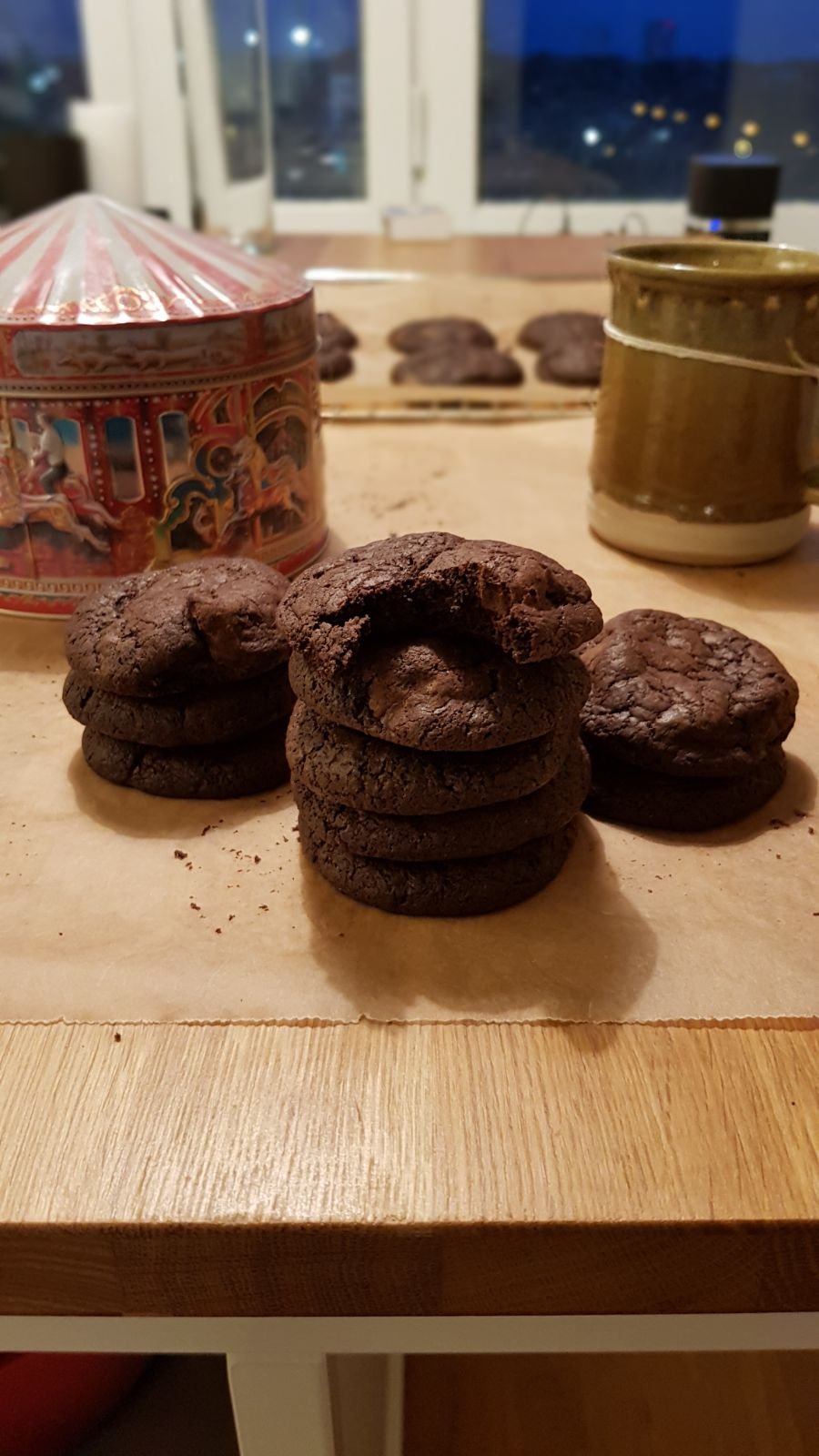 Chocolate cravings never go away. Especially with the fresh snow that settled in last night. A great way to start your morning is to have a couple of these awesome easy to bake double chocolate chip cookies!