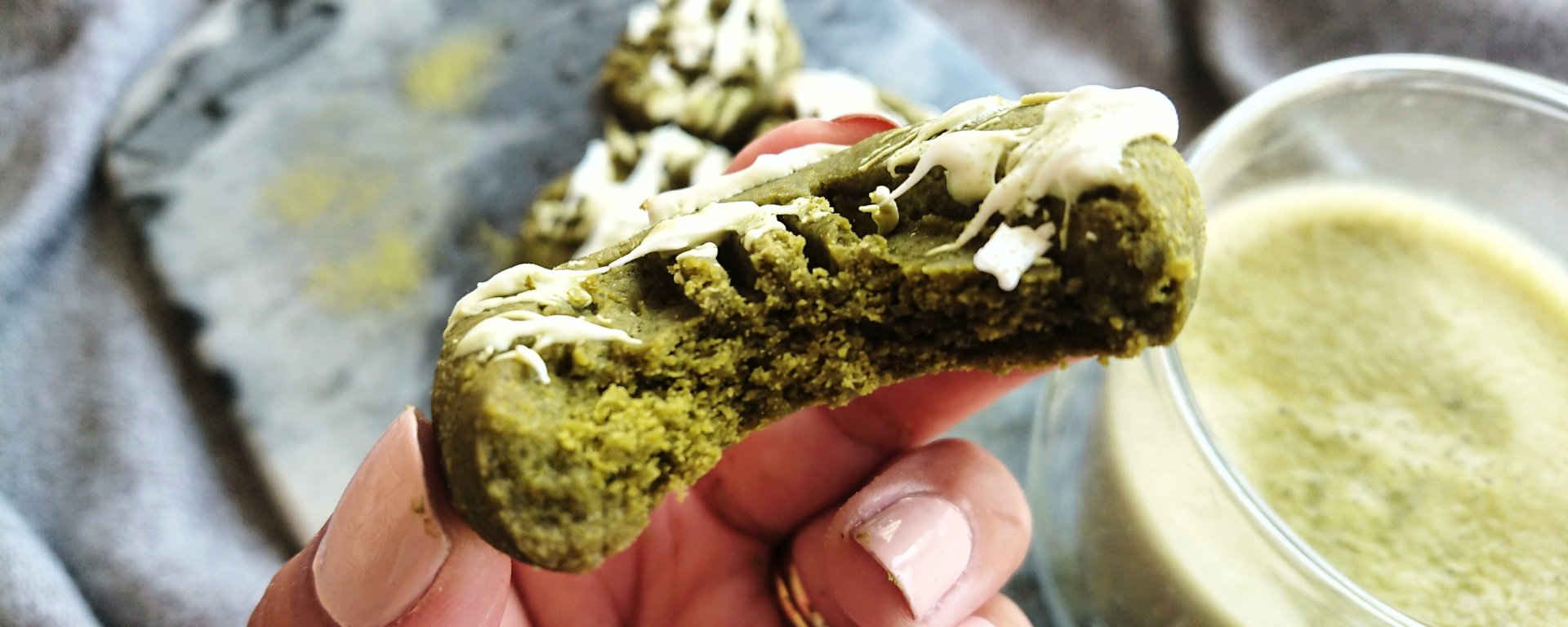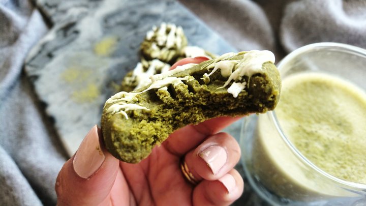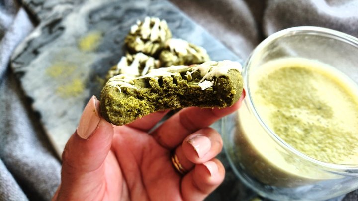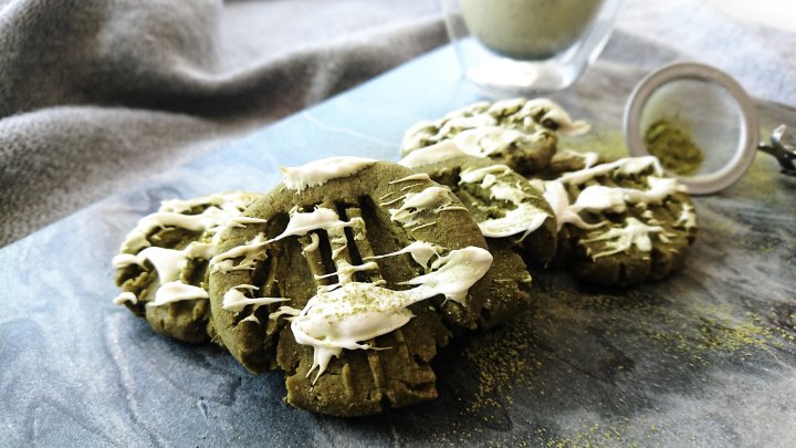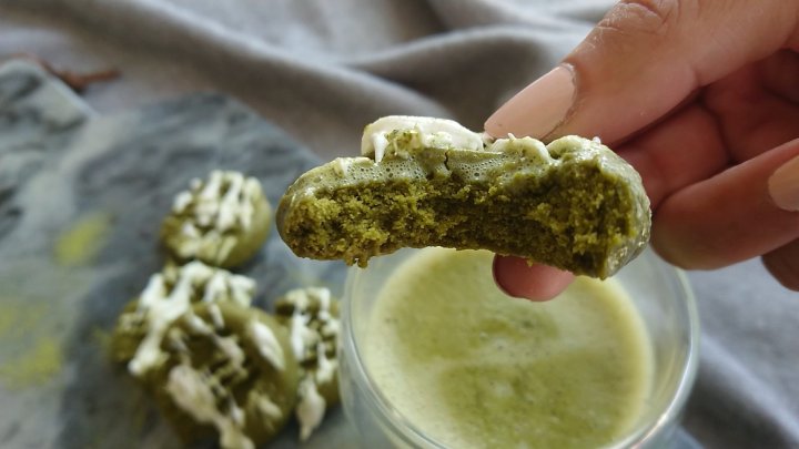 Matcha is such a versatille ingredient. You dont only drink it, you can bake with it cook with it.. anything really. It has a very strong flavour, so only adding just a touch can totally change an entire bake! Here are my indent matcha cookies with some white chocolate drizzle!