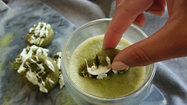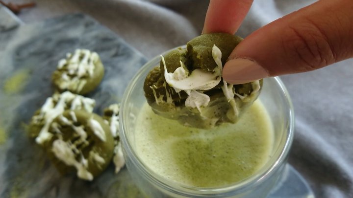 - To decorate, and to give it an extra oumph in taste, take your melted white chocolate and drizzle over the cookies using a fork. And voila! Youre done! 🙂 (You can even have it with some matcha latte!)