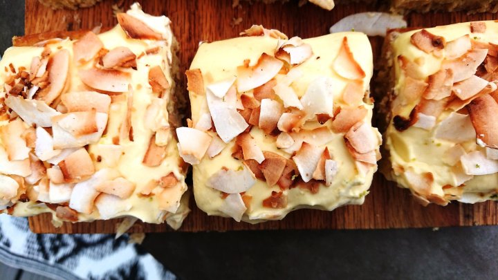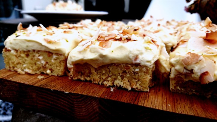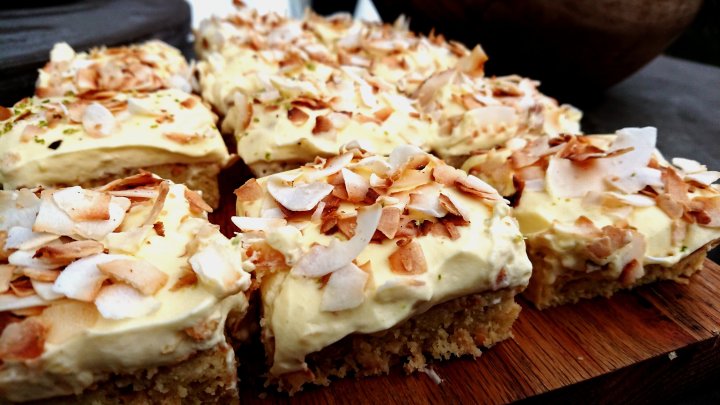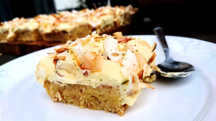 I dont think there has ever been a summer where I havent eaten anything citrusy or coconutty.. 🙂 So here is my version of this summers treat – my Coconut & Line Curd Sheet cake! Super simple, super tasty, and super summery! 🙂