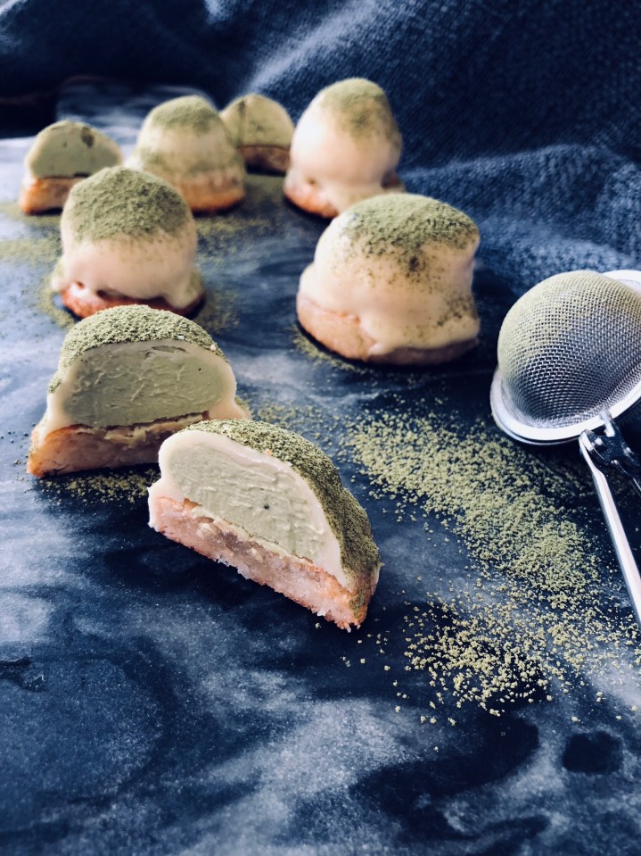 - Once they are dipped, they are ready to be eaten, or you can go a step further and decorate them, i decorated mine with sifting some matcha powder over the top on all of them. 🙂
