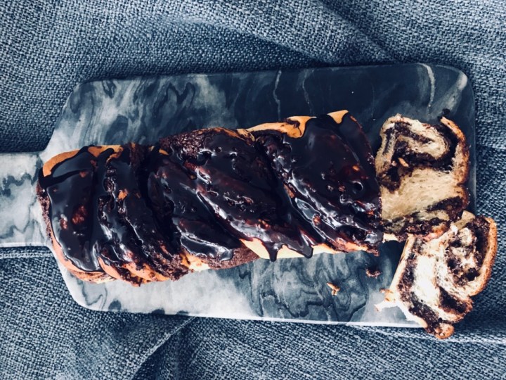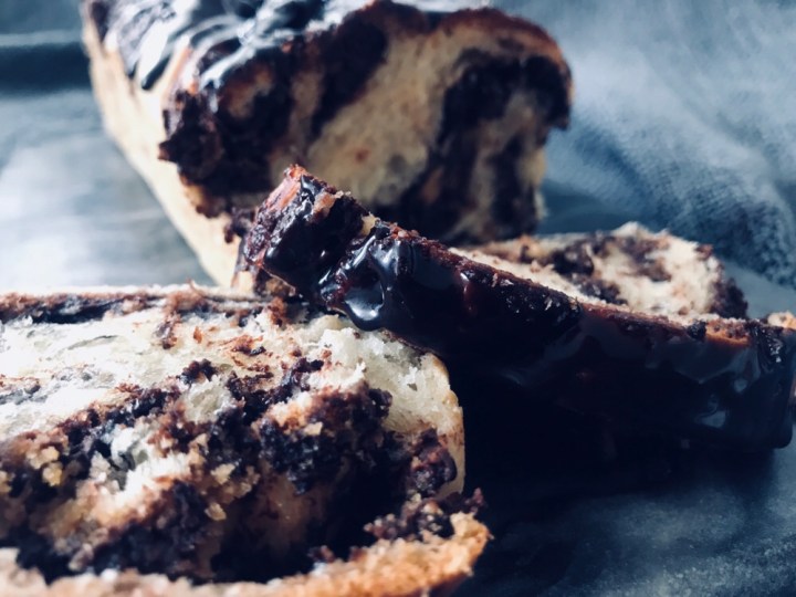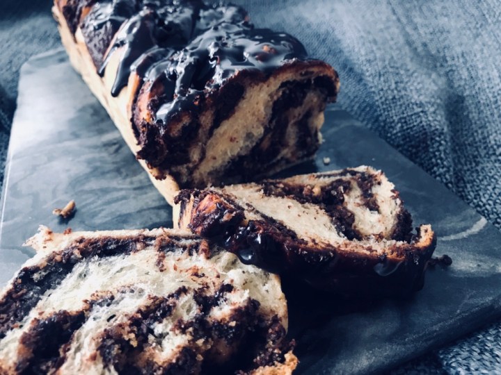 - To make the Glaze – set a heatproof bowl over a saucepan of simmering water, melt both chocolates with the butter; stir until smooth. Stir in the syrup. Spread the glaze on top of the warm babkas and let stand until set, about 30 minutes.