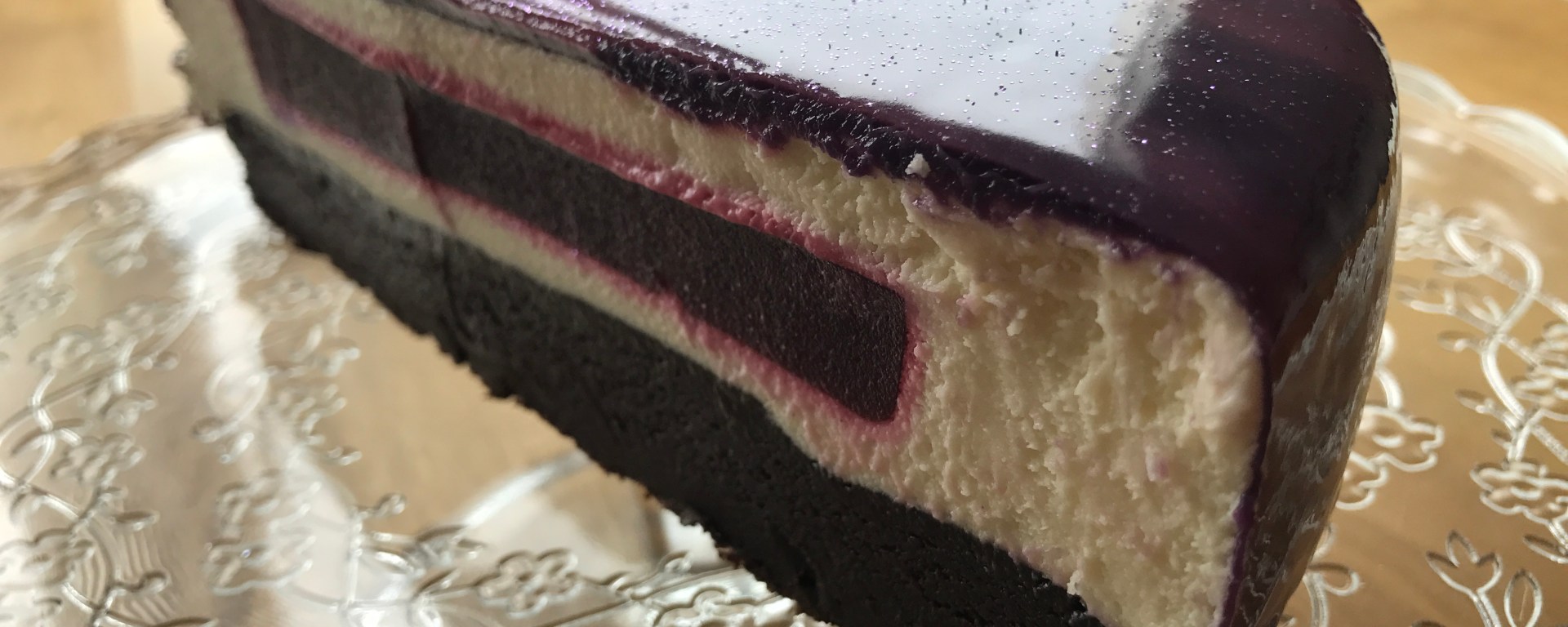 The glaçage is a covering for the chilled cake underneath it. You can make any type of cake, however my preferences are always brownie bottom with a mousse and a slit of fruit jelly in the centre! Doesn’t that sound delicious!