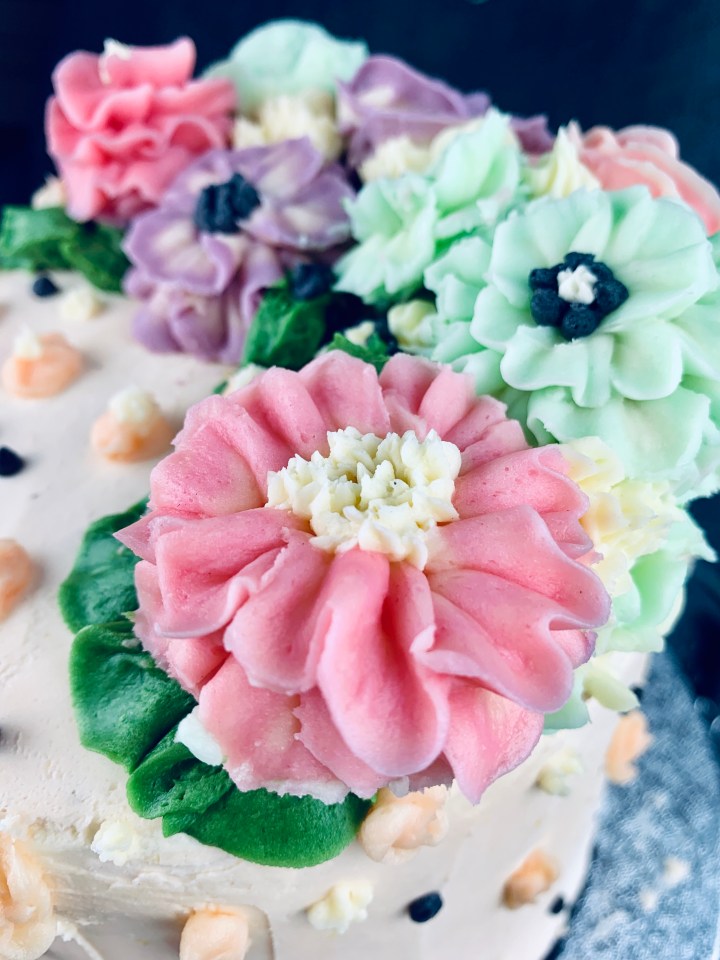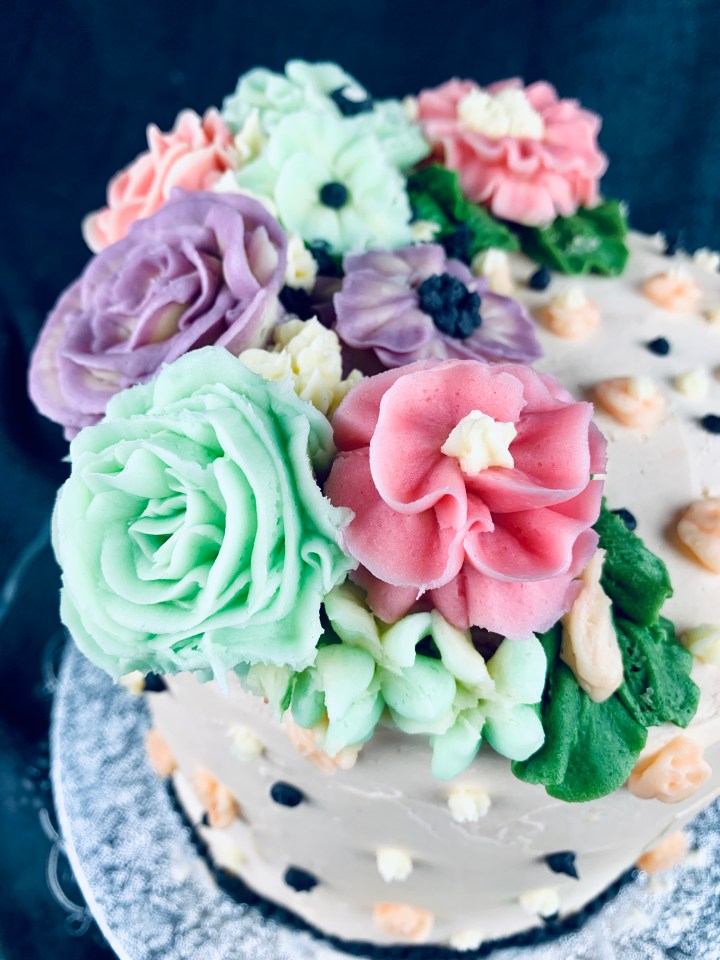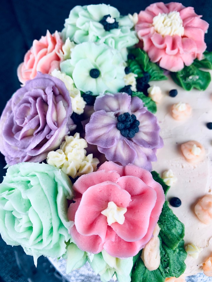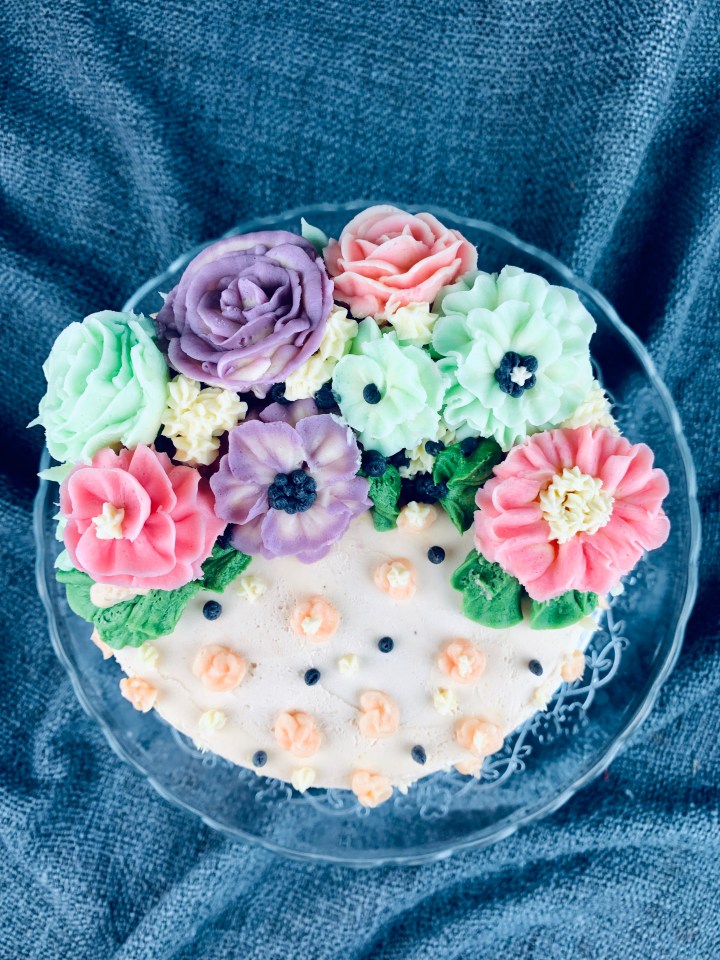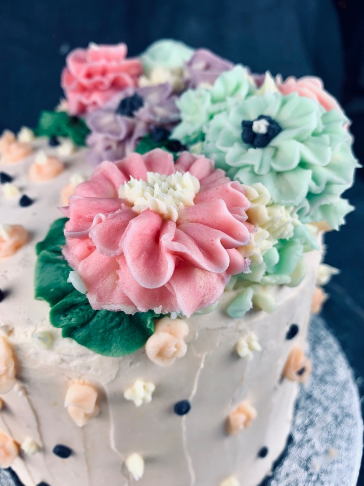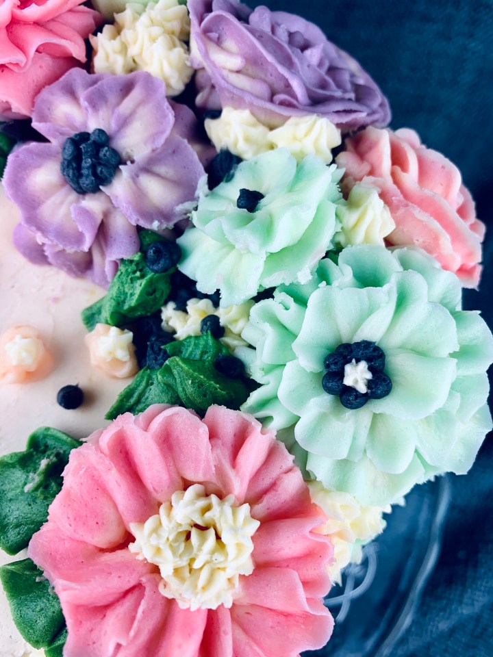 Decorating a cake can’t always be easy, especially when you want to impress someone. As a creative person I always think of different colors, textures, frostings (I’m not a fan of sugar paste so I generally stay away from that and try using creams instead). Here I’ve taken the trend of buttercream flowers and made a few easy ones for you guys to follow and create. They are super cute, tasty, and fun to do! You can chose any colour combination you wish or just go all realistic and try choosing cookies that match the seasonal flowers! My buttercream recipe is a basic one, but I’ve added some lemon extract and lemon zest to spike it up a bit.