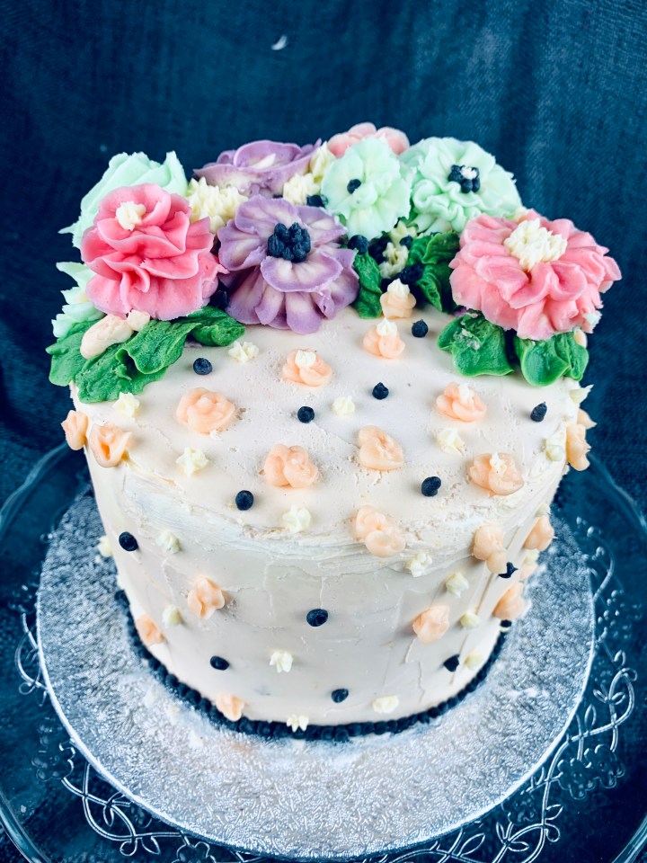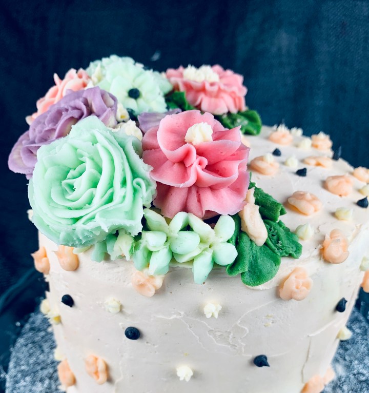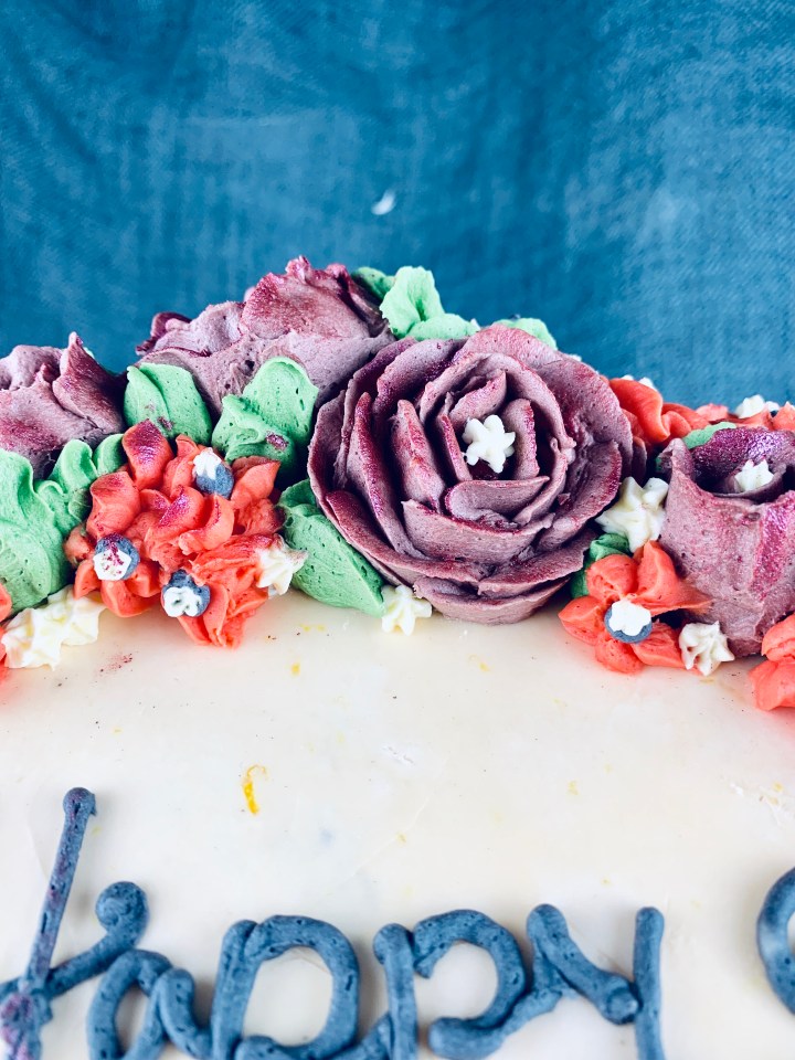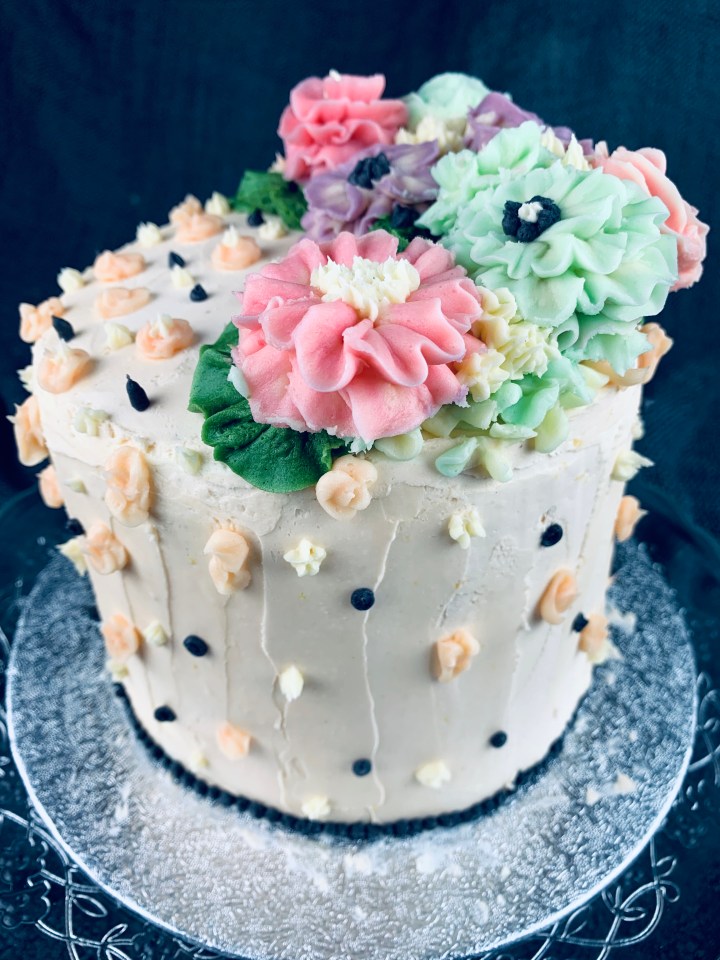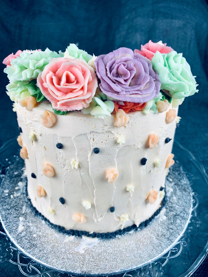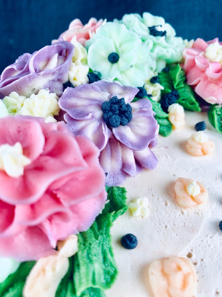Decorating a cake can’t always be easy, especially when you want to impress someone. As a creative person I always think of different colors, textures, frostings (I’m not a fan of sugar paste so I generally stay away from that and try using creams instead). Here I’ve taken the trend of buttercream flowers and made a few easy ones for you guys to follow and create. They are super cute, tasty, and fun to do! You can chose any colour combination you wish or just go all realistic and try choosing cookies that match the seasonal flowers! My buttercream recipe is a basic one, but I’ve added some lemon extract and lemon zest to spike it up a bit.