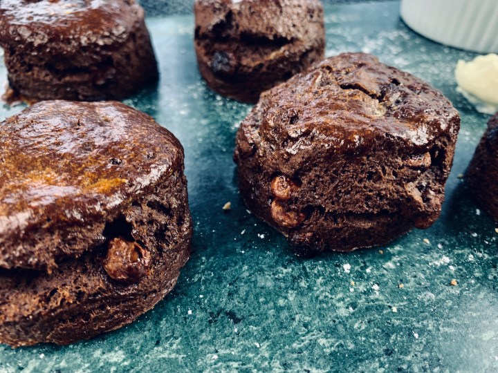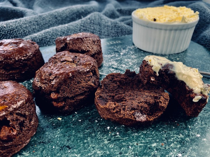 Scones are one staple British breakfast/brunch/afternoon tea treat. It’s also commonly just a plain scone, and to be honest they are extremely tasty on their own, and without any additional flavoring. However, because I absolutely love chocolate, and had some chocolate chips left over from a previous bake, I thought why not change things up a bit. So in true Ammna ‘extra’ style, I’ve created the perfect double chocolate chip scone recipe, that is chocolatey, fluffy, tasty, and perfect for any brunch or breakfast you might be having or treating others to. It only takes 15 minutes to prep and another 15 to bake, so if you’ve got the ingredients at home, and have 30 min to whip up some amazing breakfast/brunch to impress,then this is your ‘to-go’ recipe! 😉 You dont be disappointed, I promise!