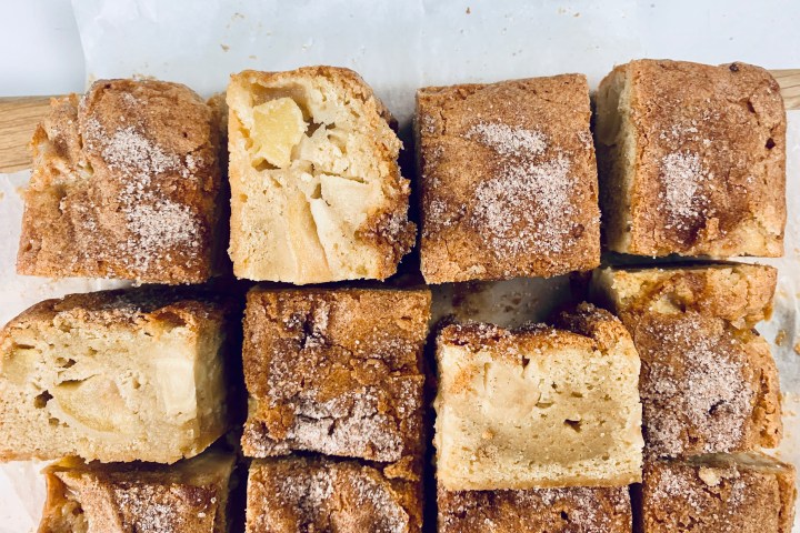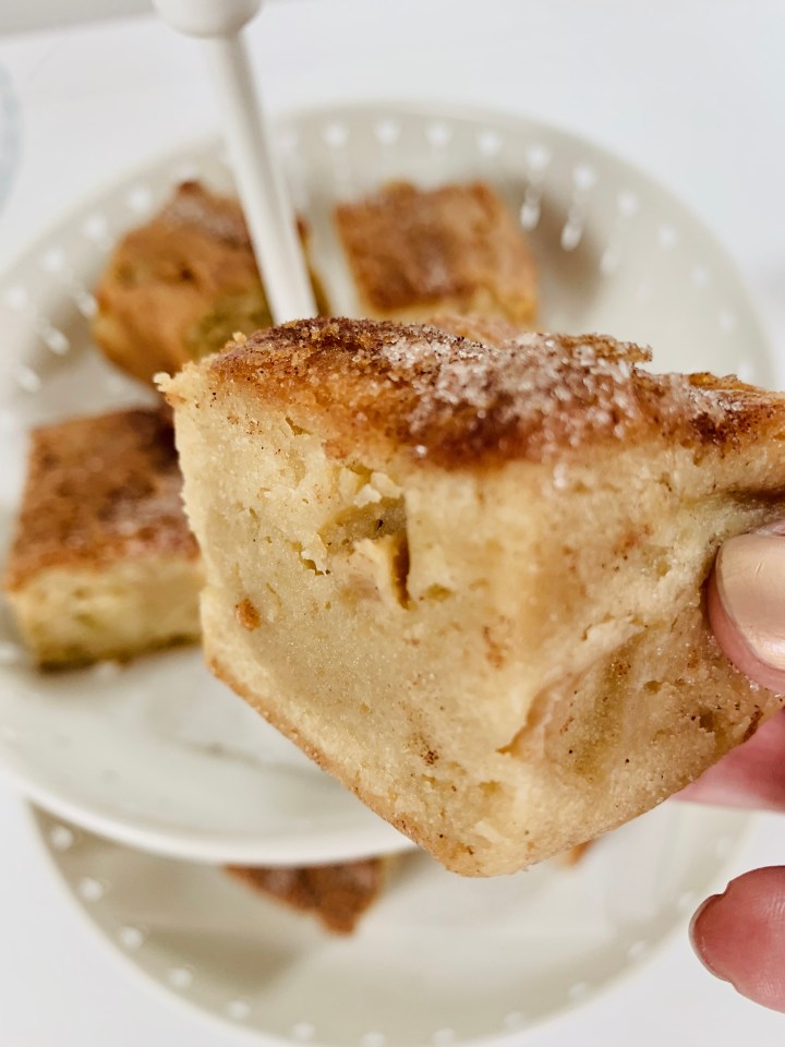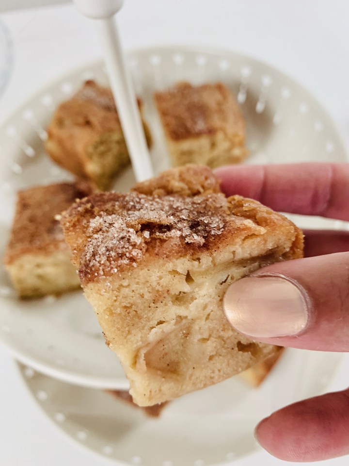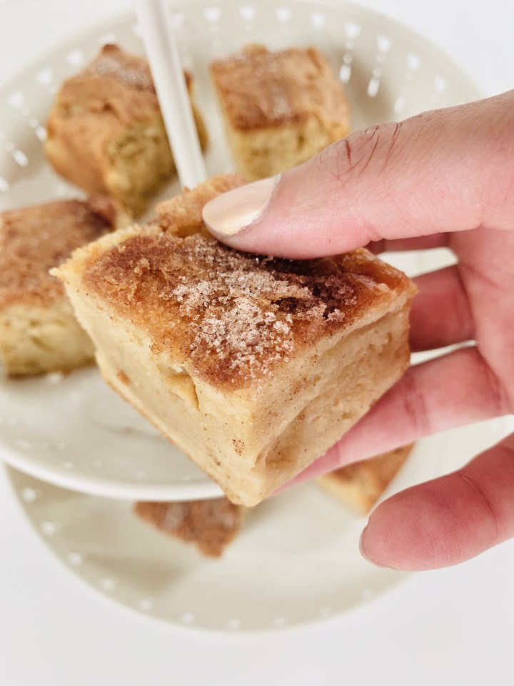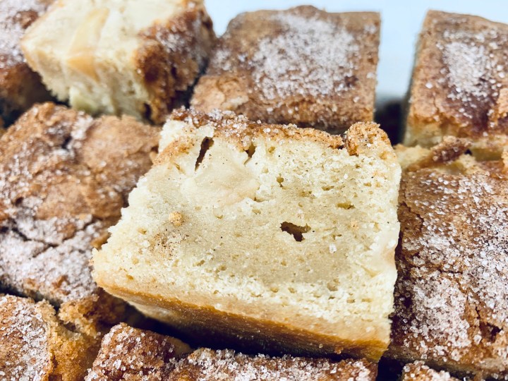 - In a small cup, mix 1 Tablespoon sugar and 1/2 teaspoon of cinnamon. Sprinkle on top of the apple blondie batter.