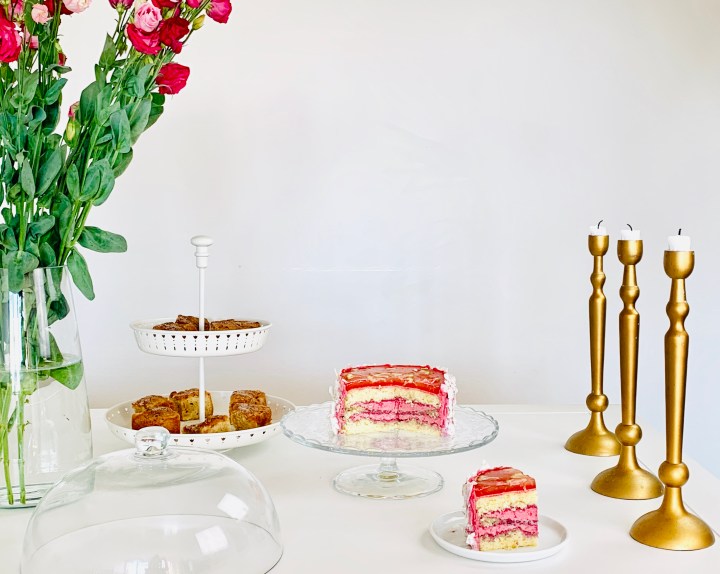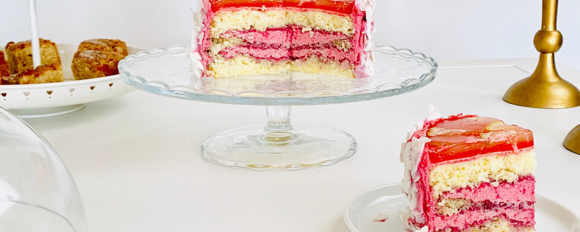 Summer has almost come to Sweden! Yay! And what better way to celebrate than to bake a cake! Here is a chiffon cake with four layers of raspberry mousse topped with a zesty lime jelly! How amazing does that sound right?!?!?! Easy to bake and extremely tasty!