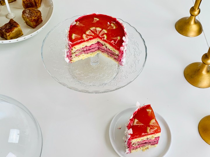 - Place the lime jelly ontop and cover sides with coconut shavings for decoration or simply just leave bare.