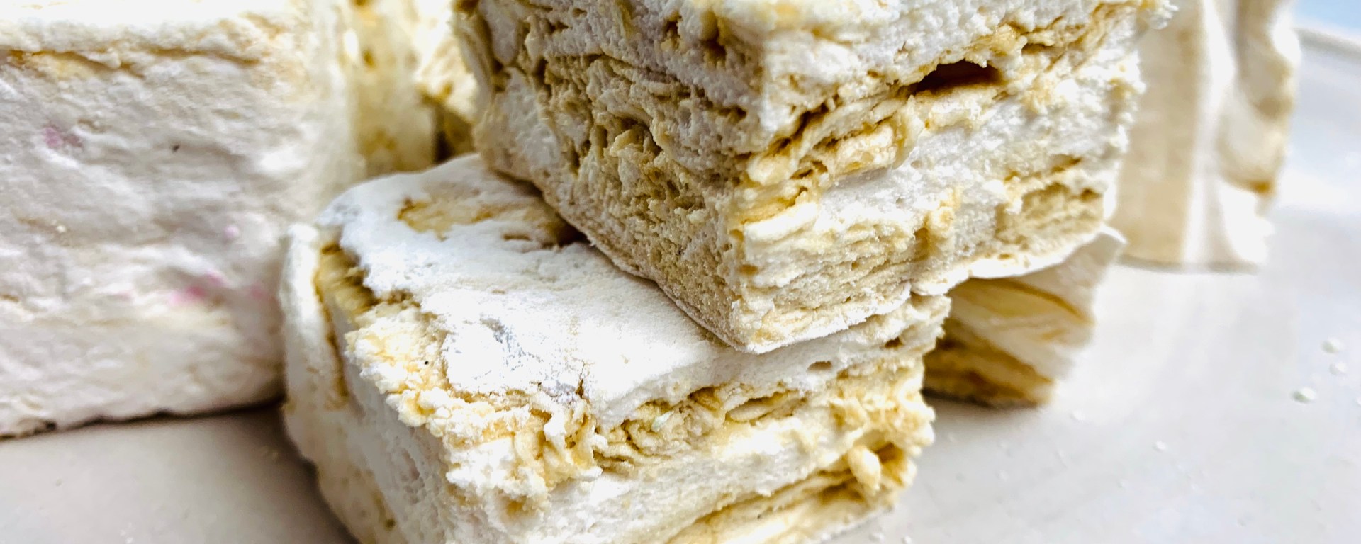 - Sift together the dusting ingredients , then turn the marshmallows out onto a board, peel off the lining paper and cut into chunks. Toss with the dusting sugar to lightly coat. Store between sheets of parchment in an airtight tin – they keep for 5 days.