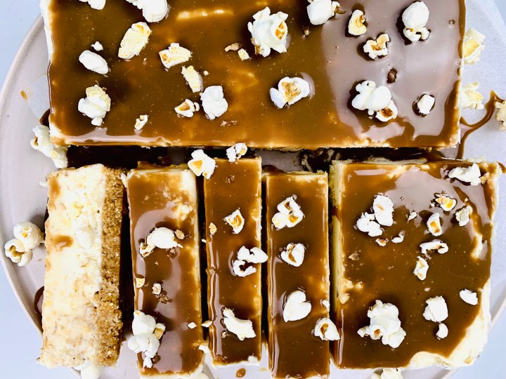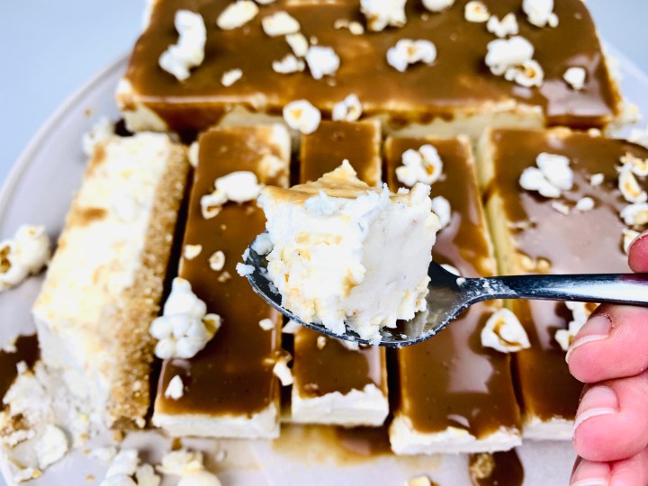 So.. Popcorn.. Ricotta…Caramel.. Cheesecake.. Does it even need an explanation!? I mean how delicious does that sound!? Plus its creamy, a little salty, a little sweet, a little crunchy and then yes! Its exactly what you probably want to eat right now! 🙂 The baking part is very easy, its basically the waiting game of when the cheesecake will be set for you to pour on that salted caramel and just devour it! Everyone will love it, adults will think ‘hmm ricotta..’ and kids will say ‘ Yes! Popcorn!’.. you literally cant go wrong! Plus its a no-bake treat, which means super easy peasy! And if you substitute the digestive biscuits for the base to something gluten free, then your on a 100% gluten free dessert as well! Perfect right!