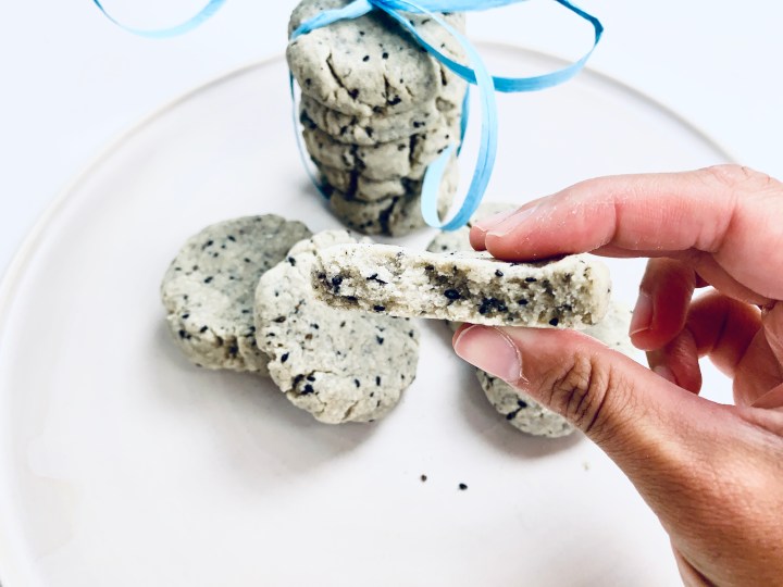 - Add in the flour and continue to mix until the dough just starts to form. Mix in the sesame seeds until combined. This could be a little dry, and if so, just take it out and start working the dough with your hands. Don’t add any more butter in it, the cookie is meant to resemble a shortbread, so it should be a bit crumbly. It takes a bit of patience, but trust me it does come together.