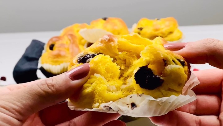 In Sweden during Christmas you are bound to find saffron in pretty much every baked good! So why not play with this idea and upgrade the traditional Swedish saffron bun to something that even suits the millennials! 😉 I have created my own version of the saffron bun with a twist of adding almond paste and chocolate chips! Originally I decide for white chocolate only but then I thought, what the heck! Why not just try it with dark chocolate as well! Haha so there because a combo of things!