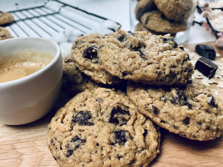 Even though it’s summer and the weather is amazing in Sweden right now, there have been days and evening with rain, thunder and storm. And what better way to chill at home than with an extremely delicious chocolate chip oatmeal cookie!!! Easy peasy, and totally delicious!