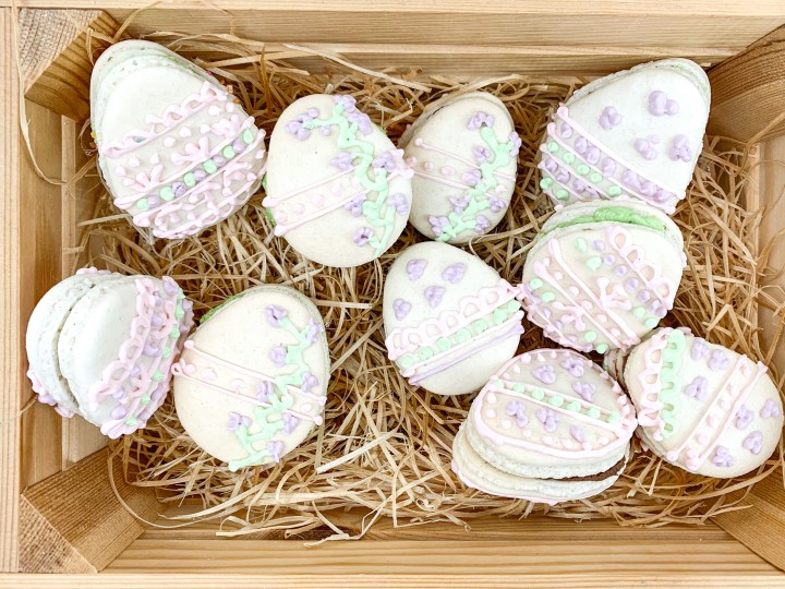 So it’s nearly Easter and because of the Corona Virus many are at home and will not be celebrating. However, if your anything like me, you still bake a lot and drop it off at peoples doors. And what better way than to bake Macarons! Because it’s Easter themed.. I’ve made Egg shaped Macarons with decorations piped from royal icing and computed sugar sprinkles. They are super adorable and will be sure to put a smile on to anyone’s face! The fillings are chocolate & pistachio. I went with traditional so nothing super fancy.. but they look and taste amazing!