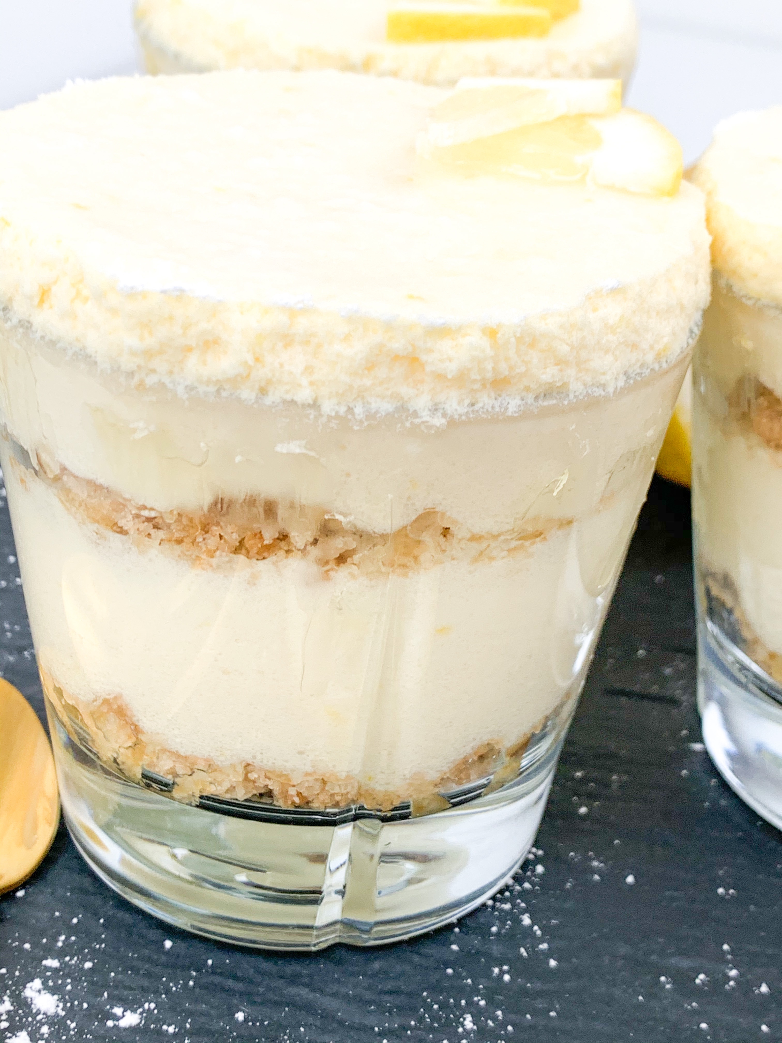 The lemony season is upon us guys.. and what better way to celebrate it than a Soufflé .. but guess what.. you don’t have to bake it! It’s a chilled Soufflé which mean that it’s a cold dessert. It has a resembles of a mousse and the texture and look of a Soufflé especially the fluffy bit ontop! This recipe has extra lemony tang to it and a crunchy coconut crumb on the bottom for some added taste and texture! Easy peasy lemon squeezy! 😉