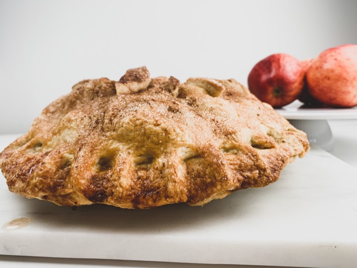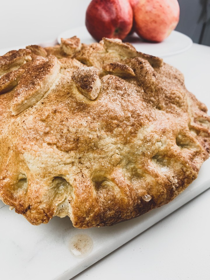 - Bake the pie for 50-60 minutes. Once the pie is ready let it sit for about 1-2 hours before slicing into it to let all the juices come together.