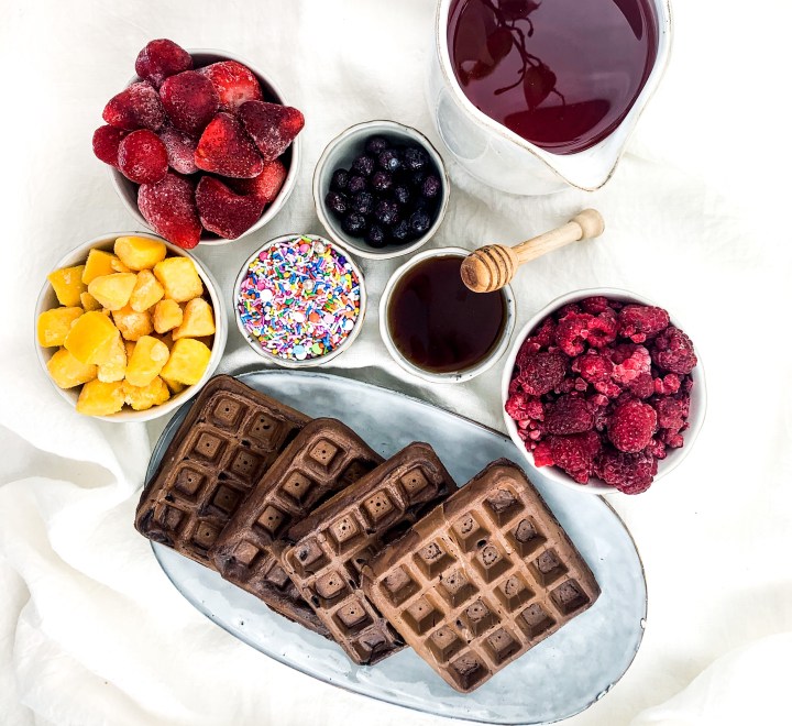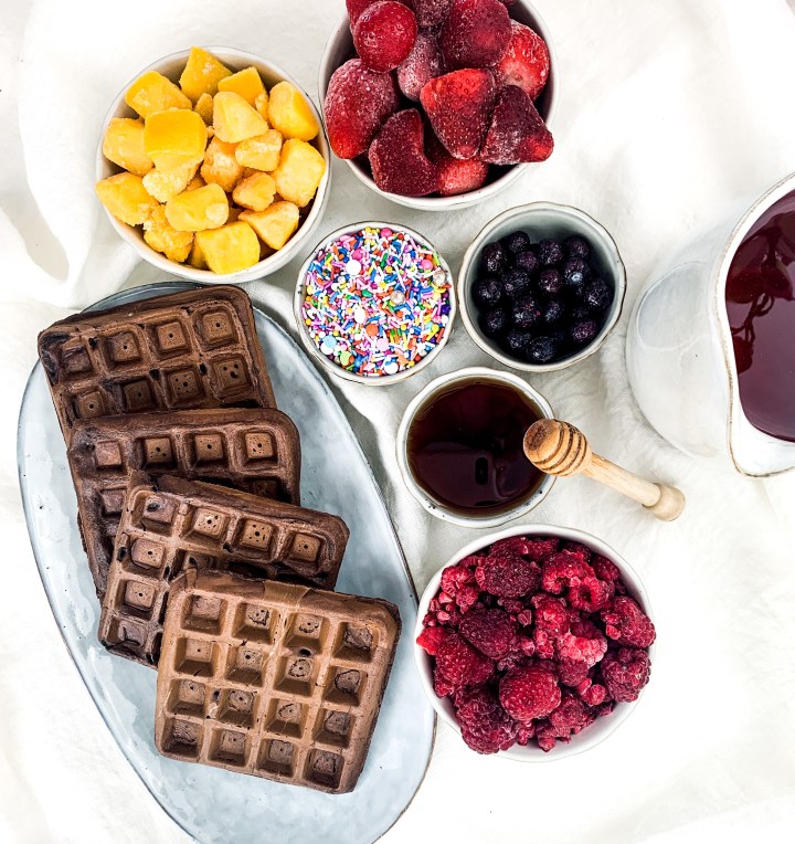 Pour the batter onto your hot waffle iron and cook according to manufacturer’s directions – mine basically has a setting for color – so if I set it to brown then the light switches off – roughly 5-7 min.