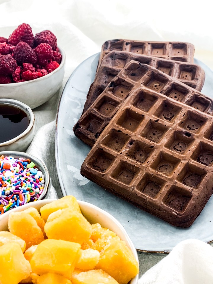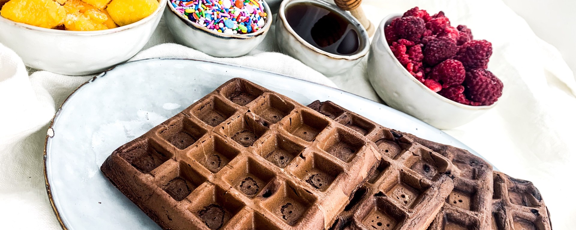 Its nearly Waffle day in Sweden (tomorrow March 25th) and I’ve been looking forward to it as I love waffles!!! And as I absolutely LOVE chocolate I thought I’d make some scrumptious chocolate waffles!