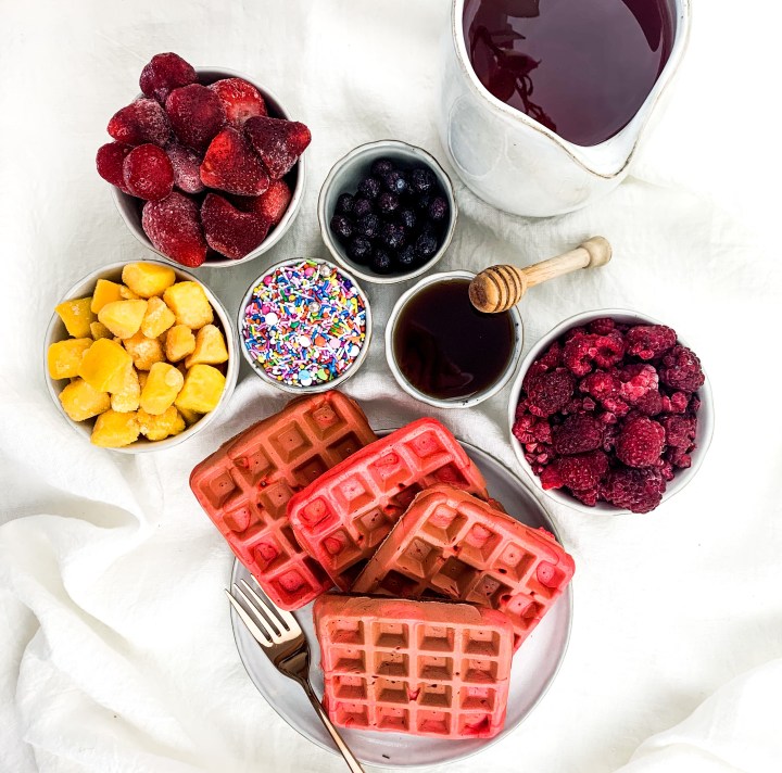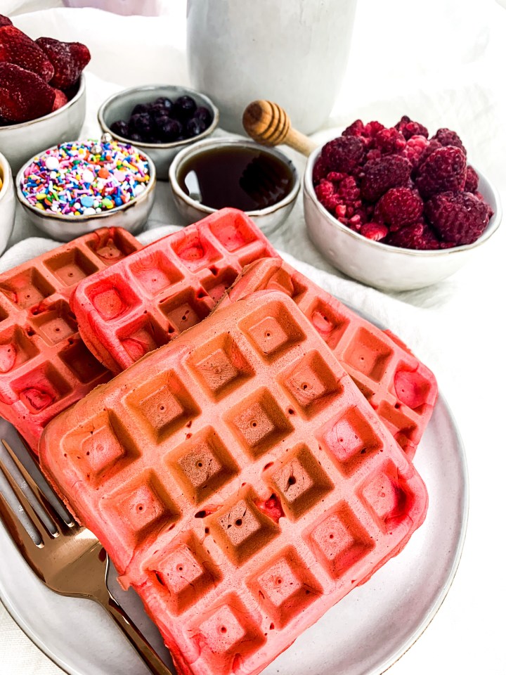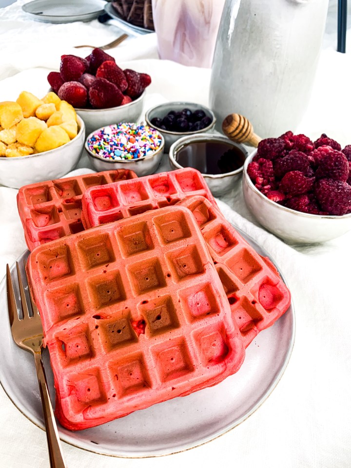 Its nearly Waffle day in Sweden (tomorrow March 25th) and I’ve been looking forward to it as I love waffles!!! This time I decided to amp things up a bit and try out a red velvet version.. and my oh my did they taste delicious!!!!! The recipe is so easy and quick to whip up so give it a try!!