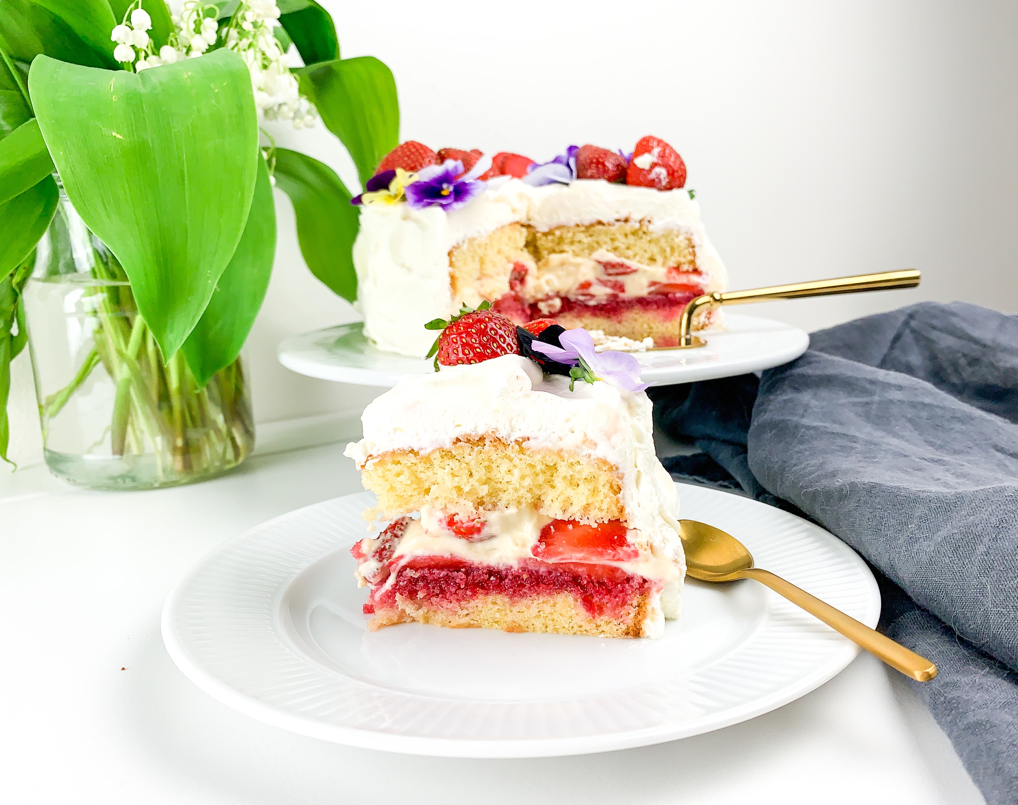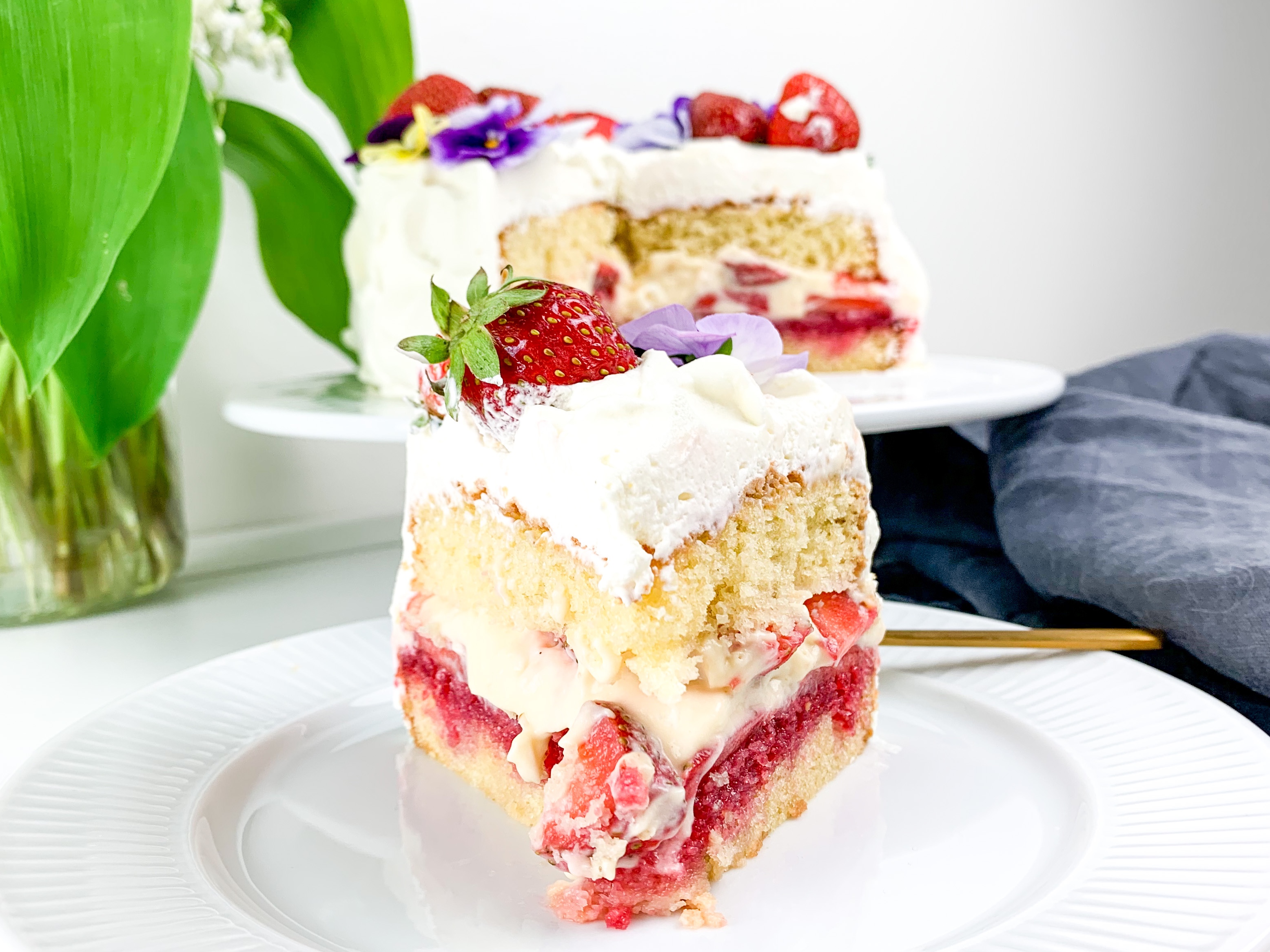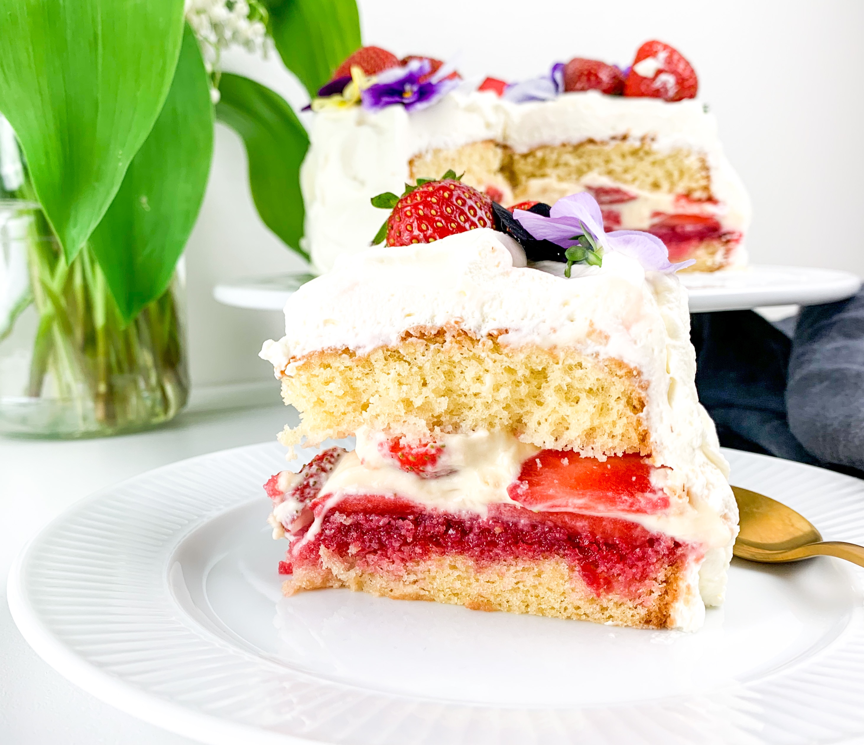 This is a small 6inch cake with vanilla pastry cream and strawberry compote with macerated strawberries in. Oh and covers in white cream Ofcourse 🙂 it’s a very easy bake, did it in two hours (including resting time) and the fact that I pulled off baking this with a 7 week year old baby.. shows just HOW easy this cake Actually is to bake! So give it a go! Plus it’s not so sweet! (Just how I like it!)
