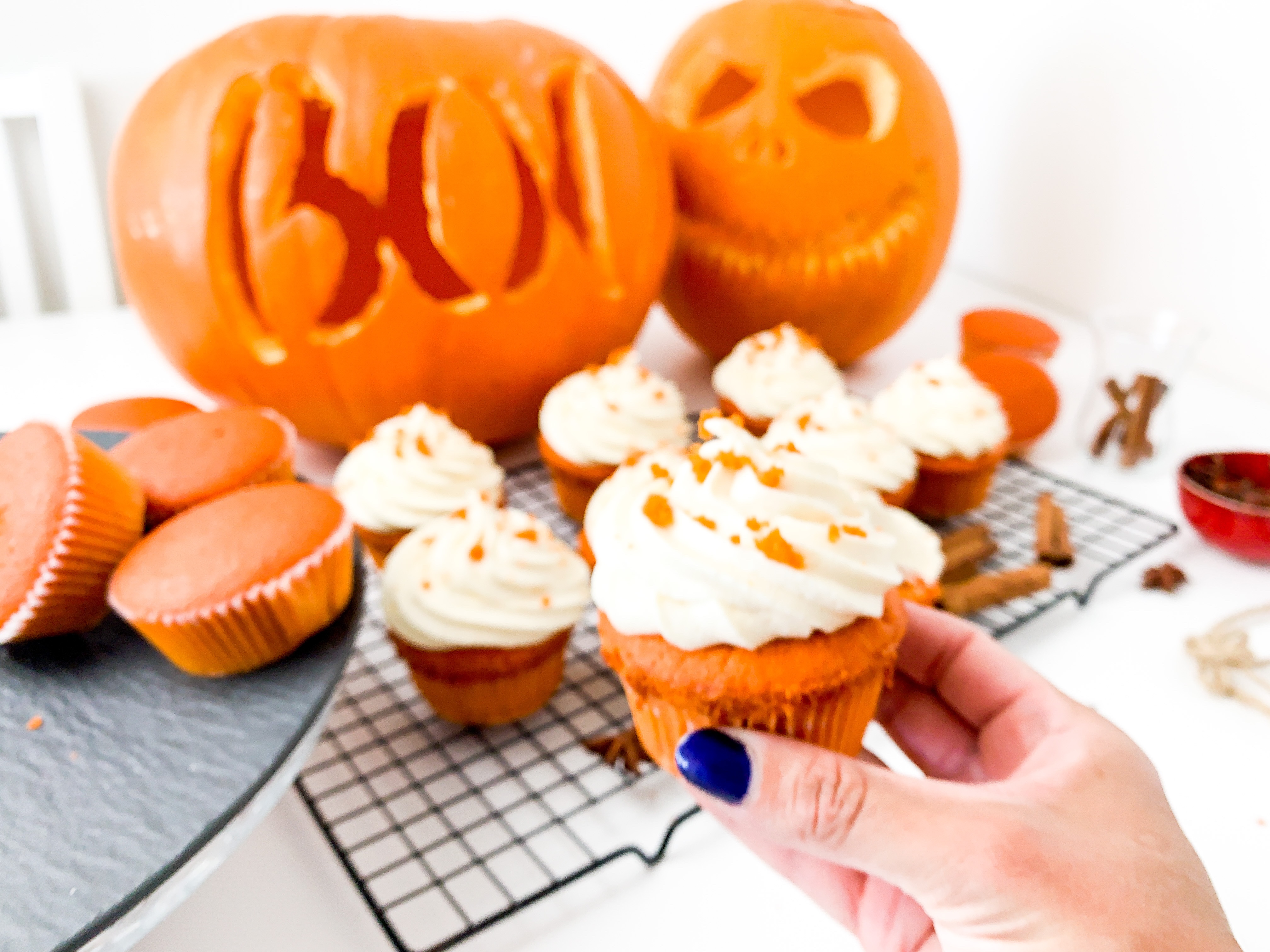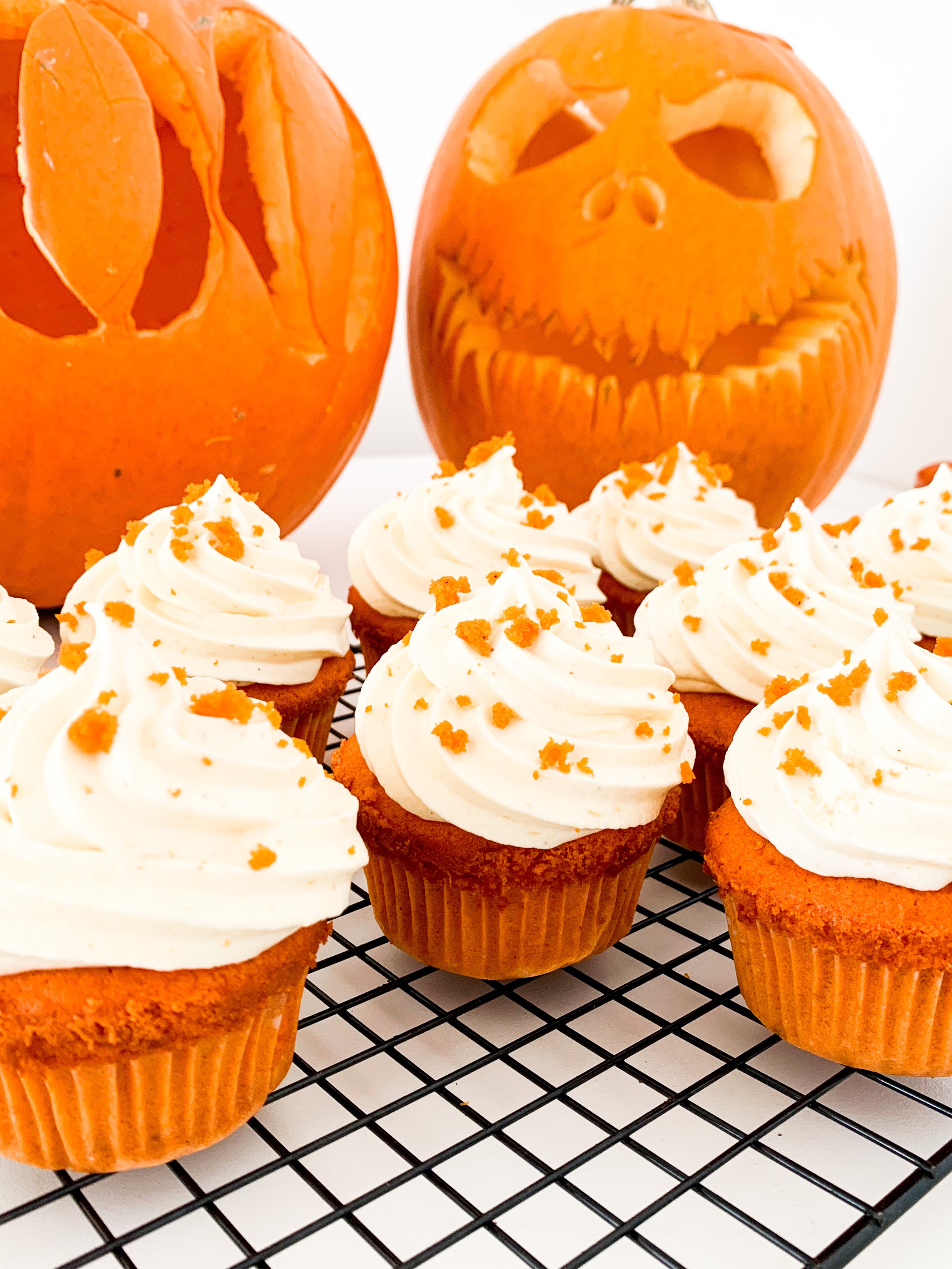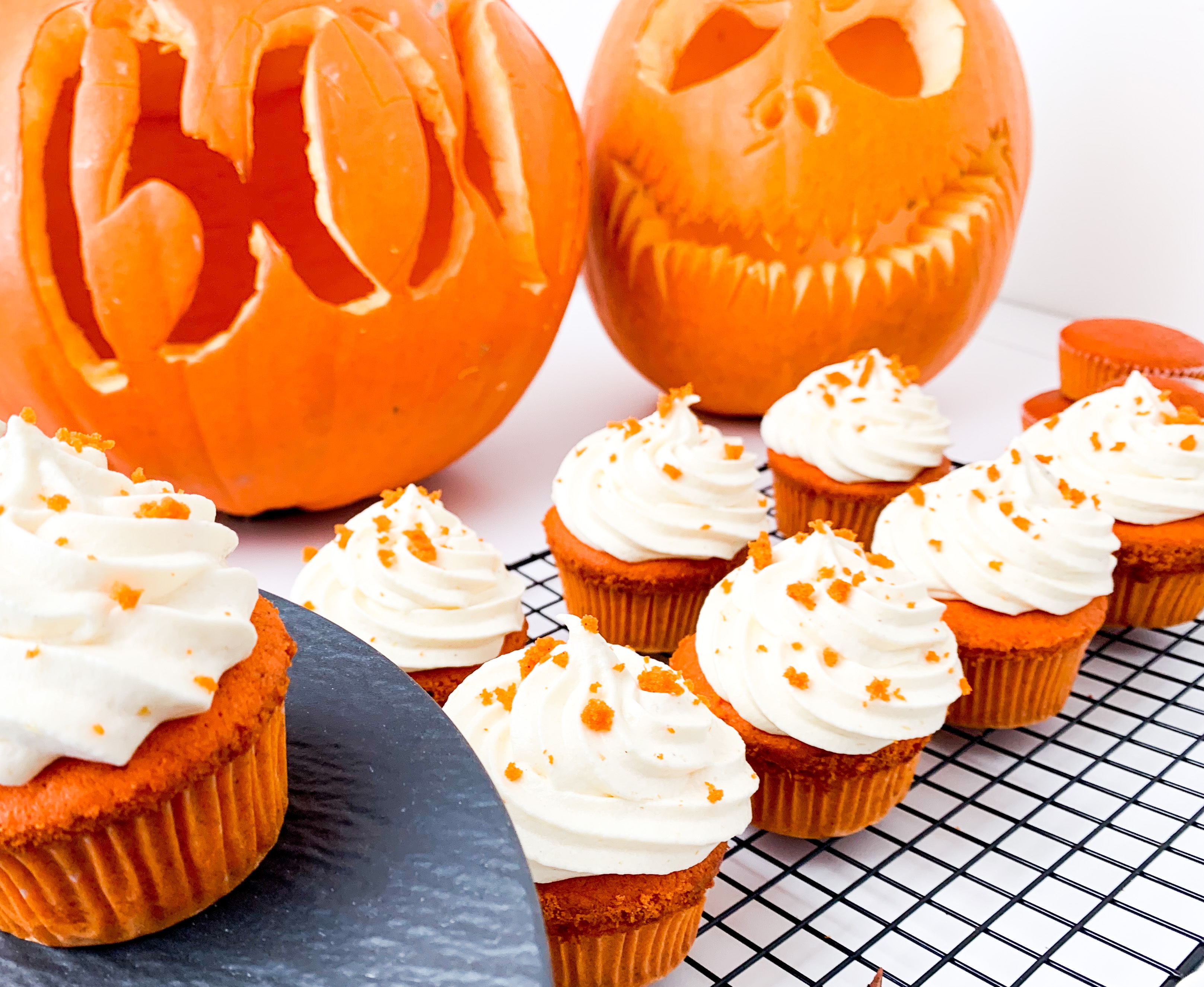 There you have it! Your October cupcakes are here and ready to be devoured! These keep in the fridge for a week without any cover. You can also freeze them for three weeks in an air tight container.