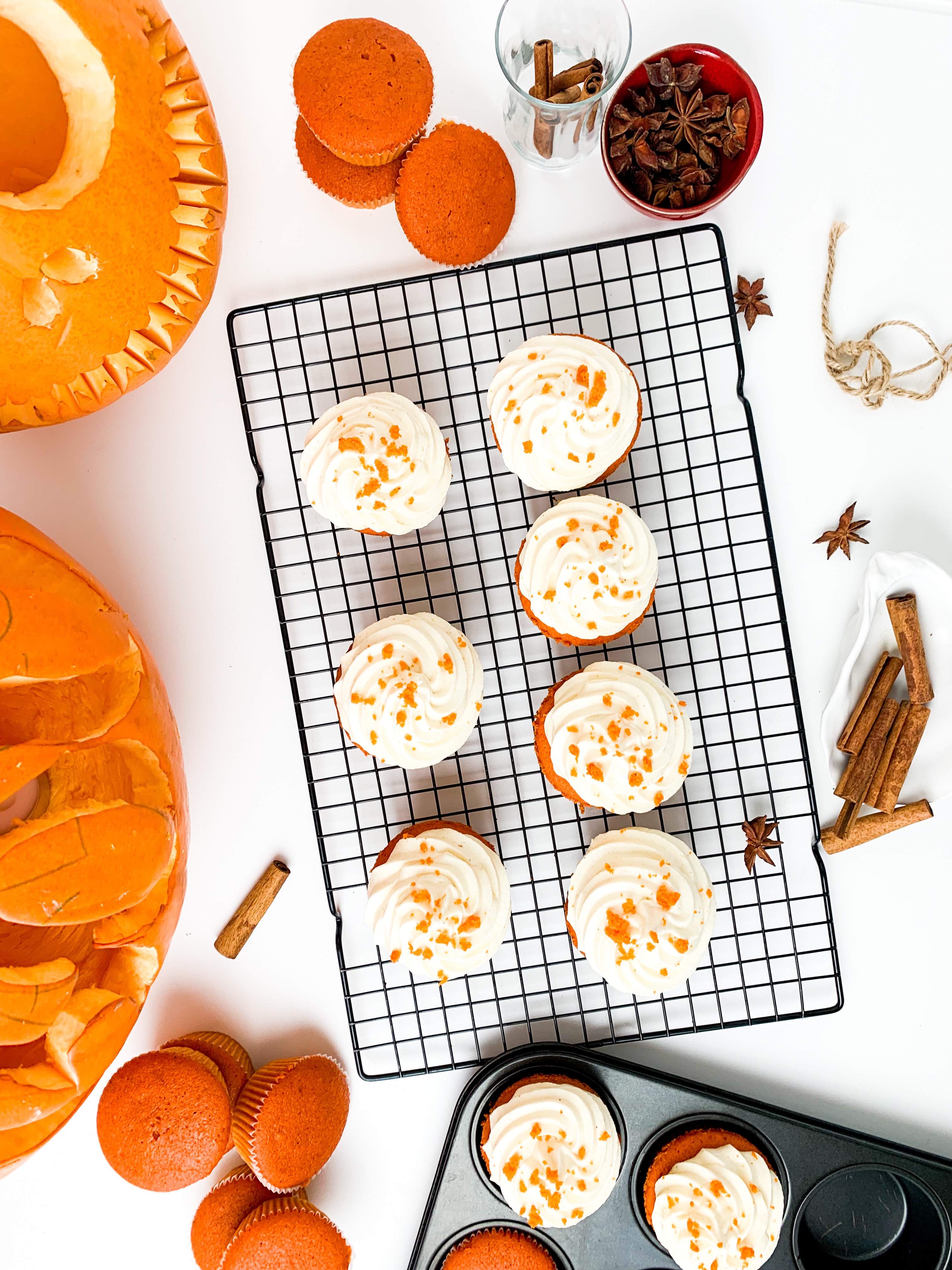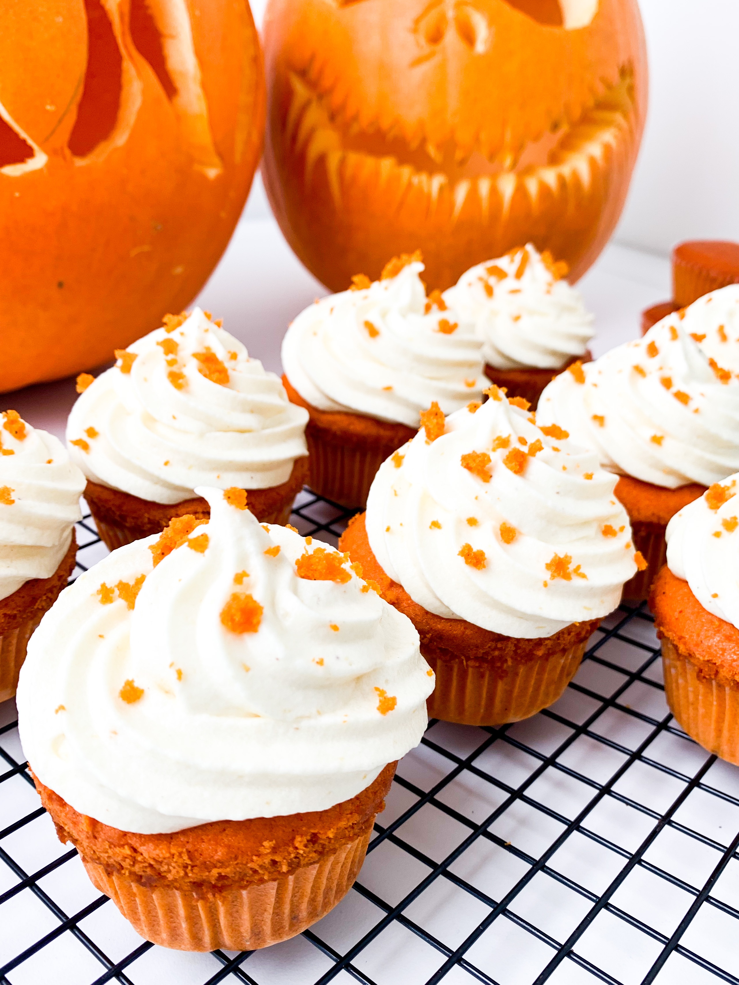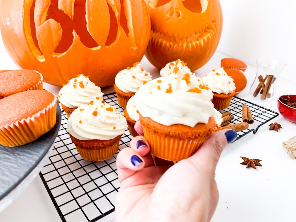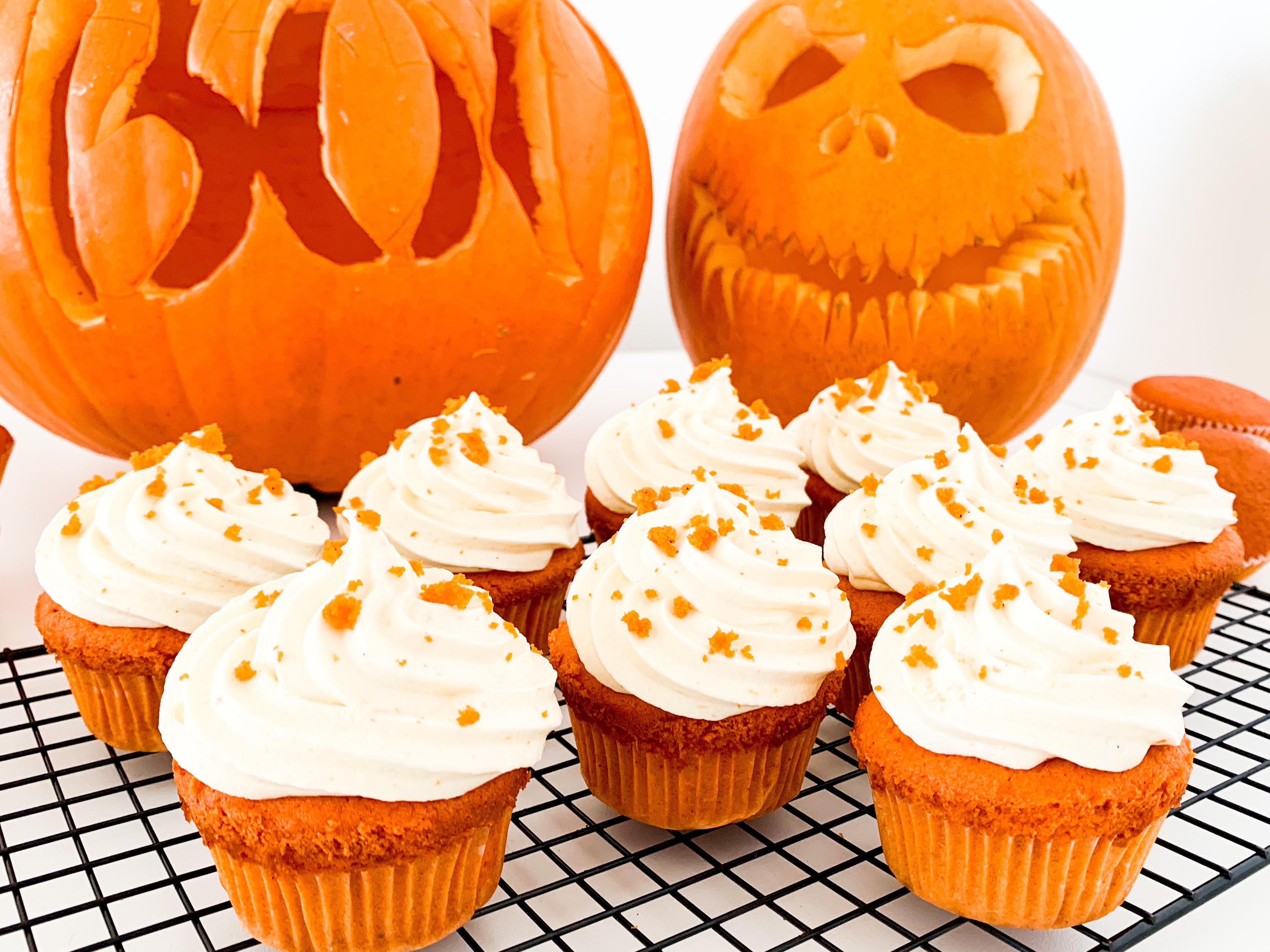 There you have it! Your October cupcakes are here and ready to be devoured! These keep in the fridge for a week without any cover. You can also freeze them for three weeks in an air tight container.