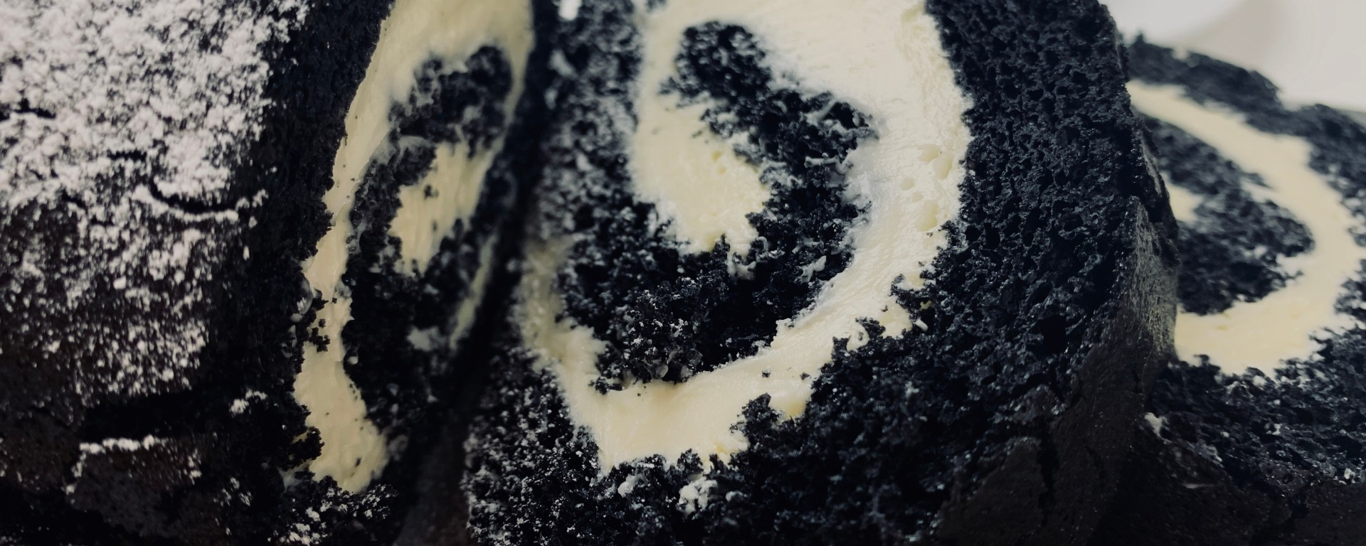 So it is October which means Halloween is creepin’ up.. and you will be seeing more dark but yummy bakes from me! Here is a Charcoal dark vanilla Swiss roll with a vanilla buttercream. Keeping the flavors simple this time but the look is Uber fantastic! Plus its a simple easy peasy recipe, with nothing hard to do! And it only takes about 15 min to whip up! Couldn’t go wrong right!?