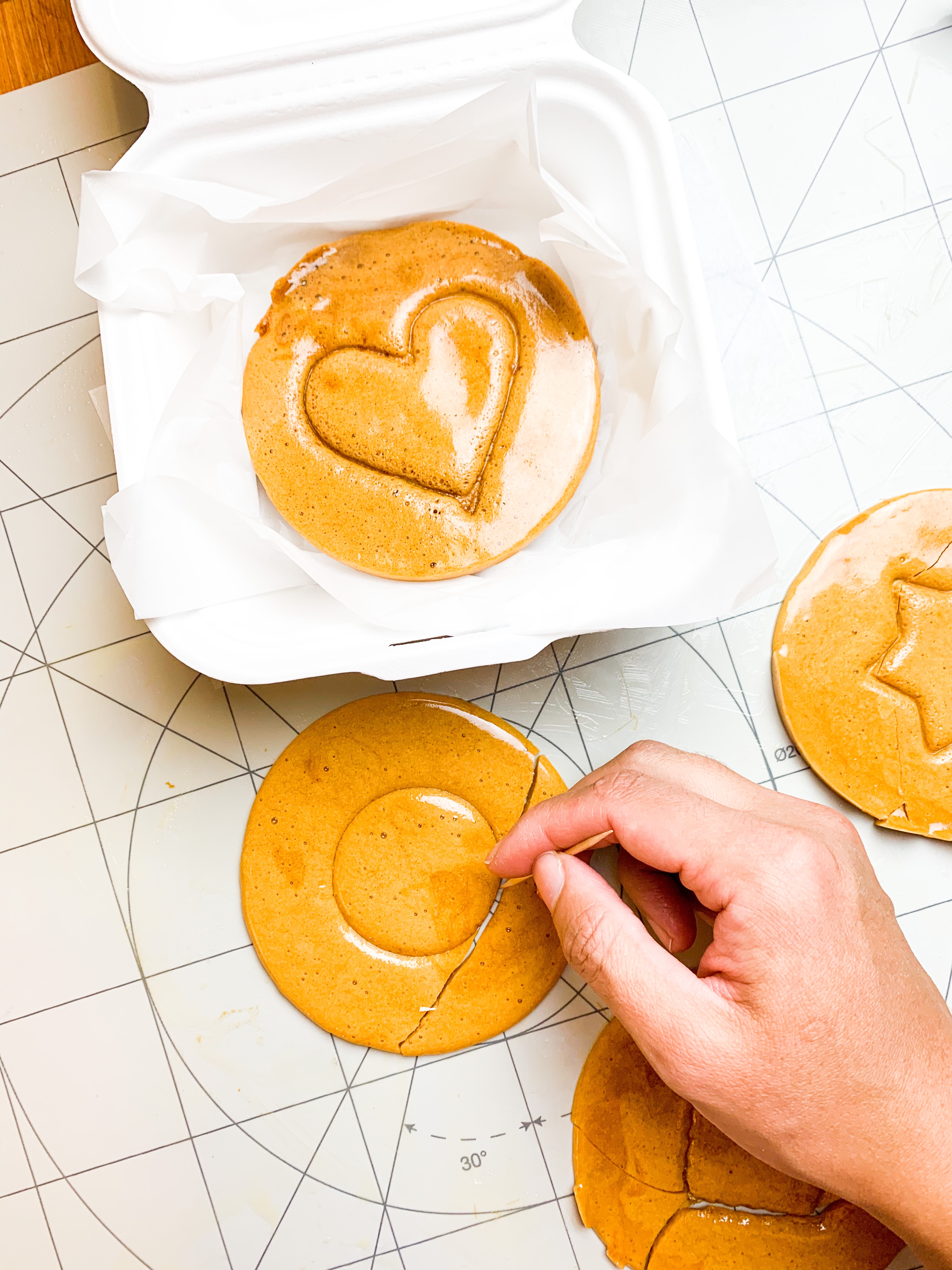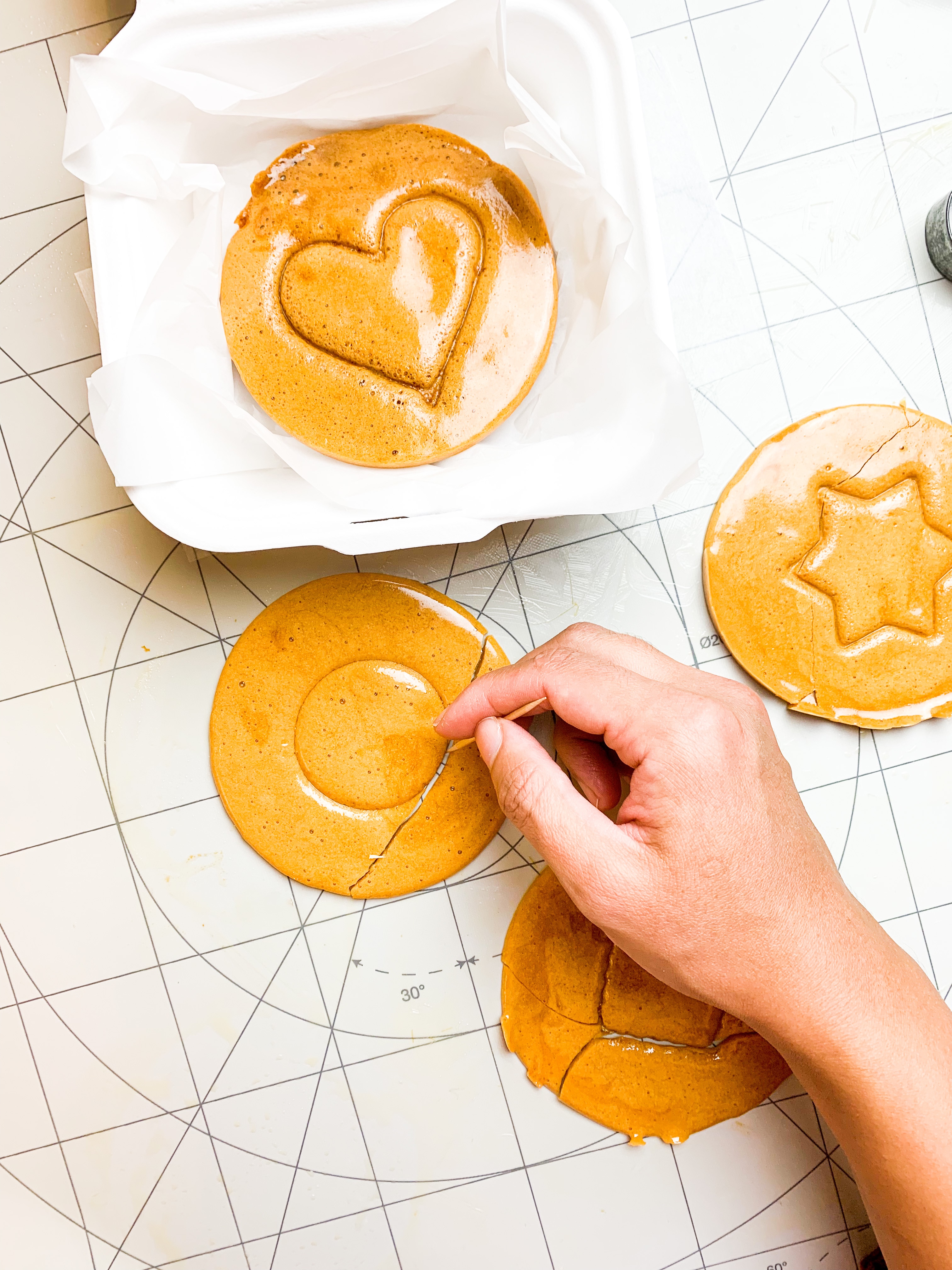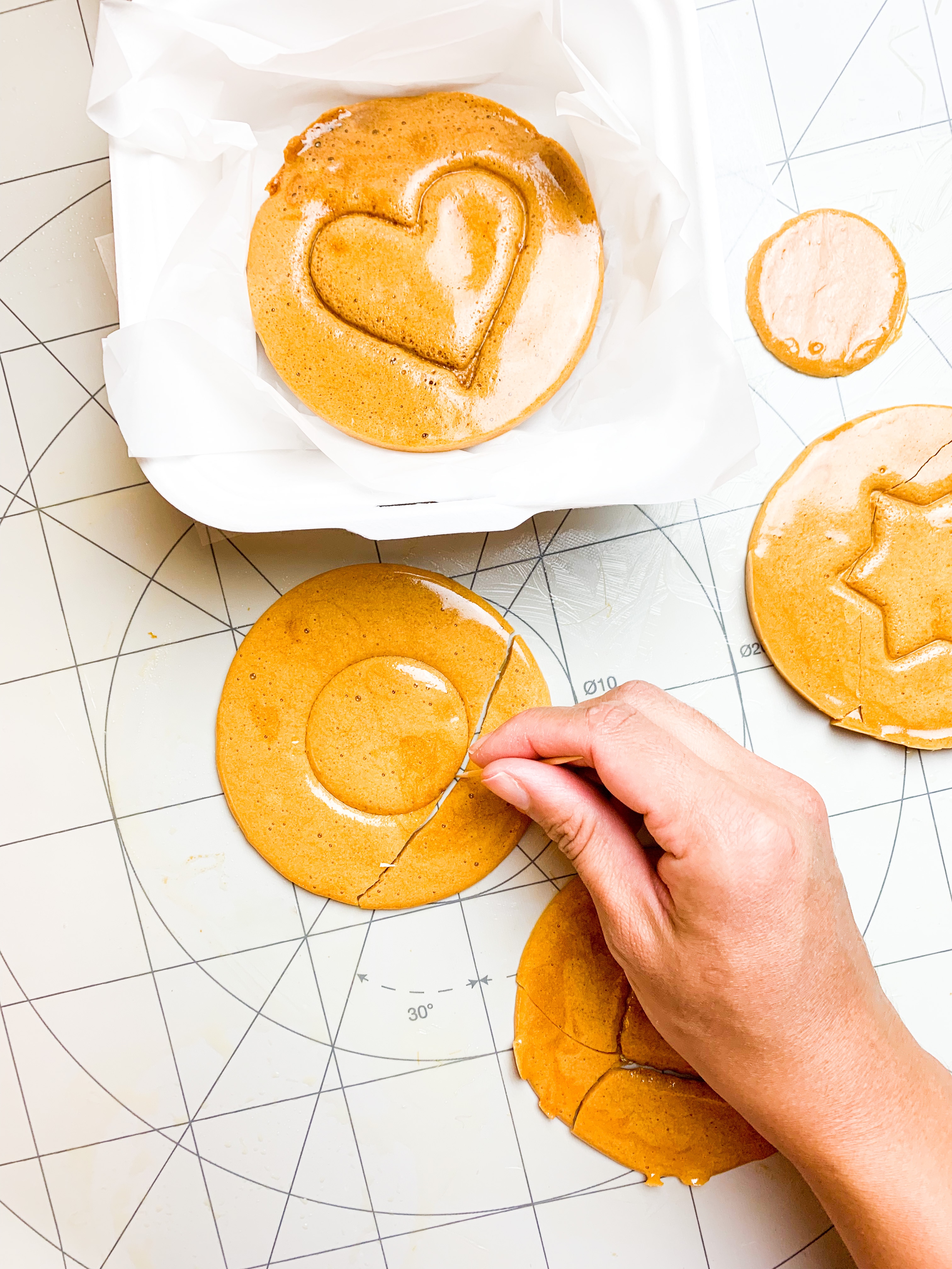 Now the reason I’m mentioning all this is because in the show (without giving any spoilers) they make a HONEYCOMBE disk with a shape embossed into it which each player needs to try and get out without breaking the shape. And I’ve managed to make them. They are very easy and once you get the hang of it , it goes fast!