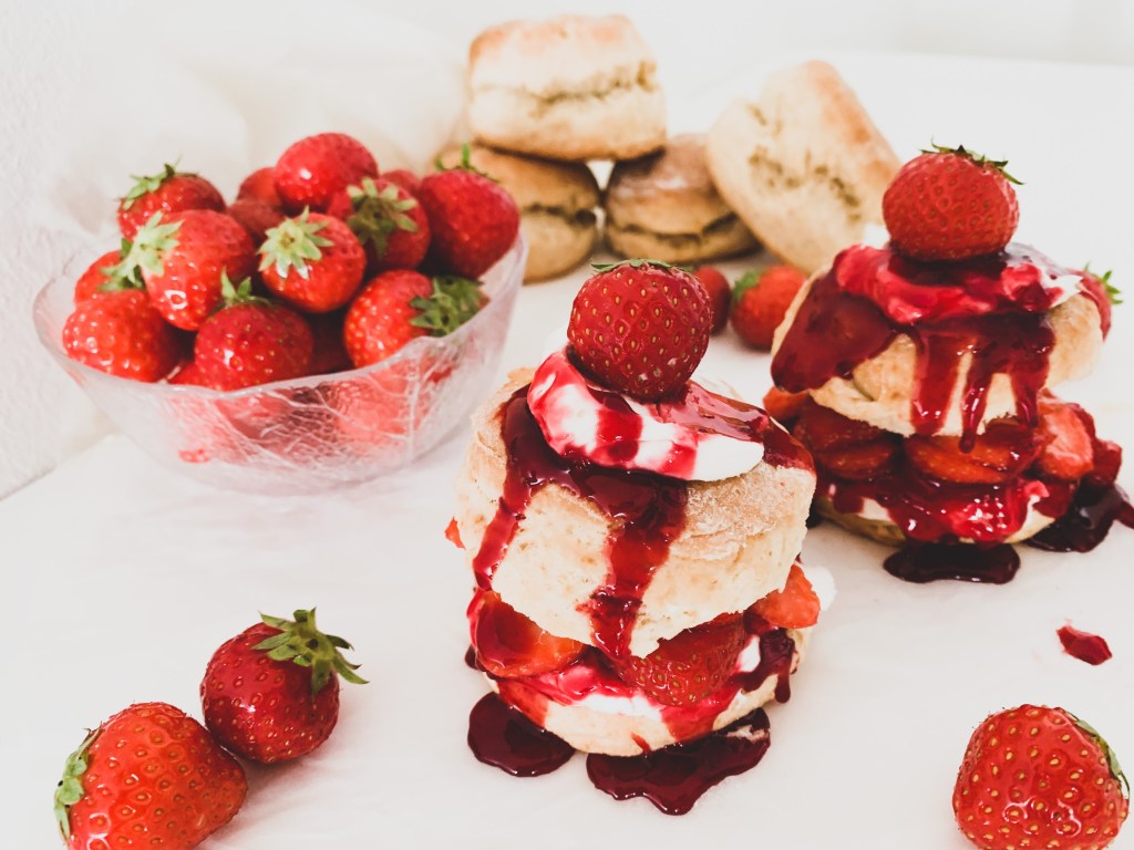 This is my take on a strawberry shortcake – it’s a sweet scone topped with strawberry compote and mascarpone whip with fresh strawberries. Now doesn’t that just sound Devine?!
