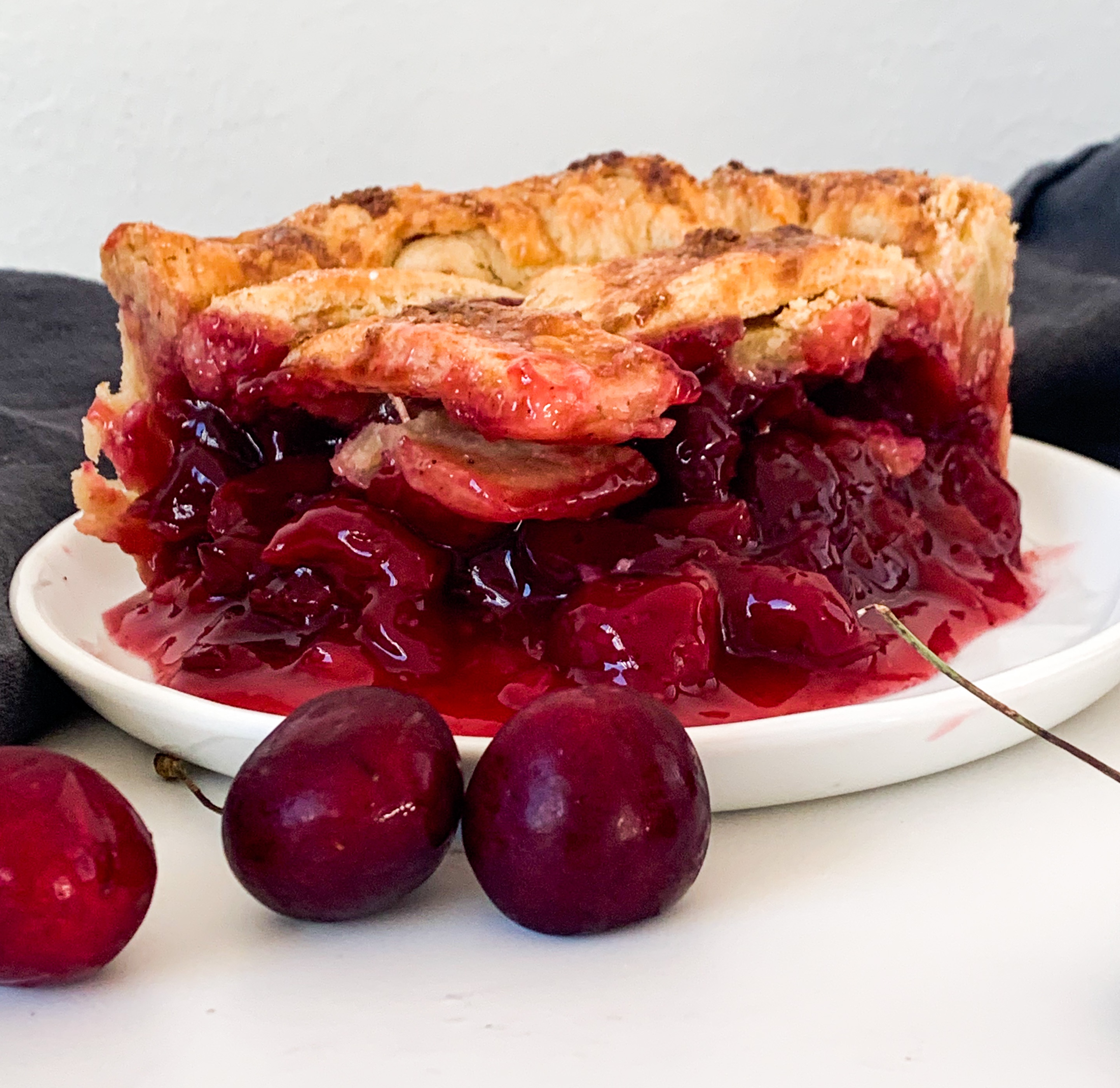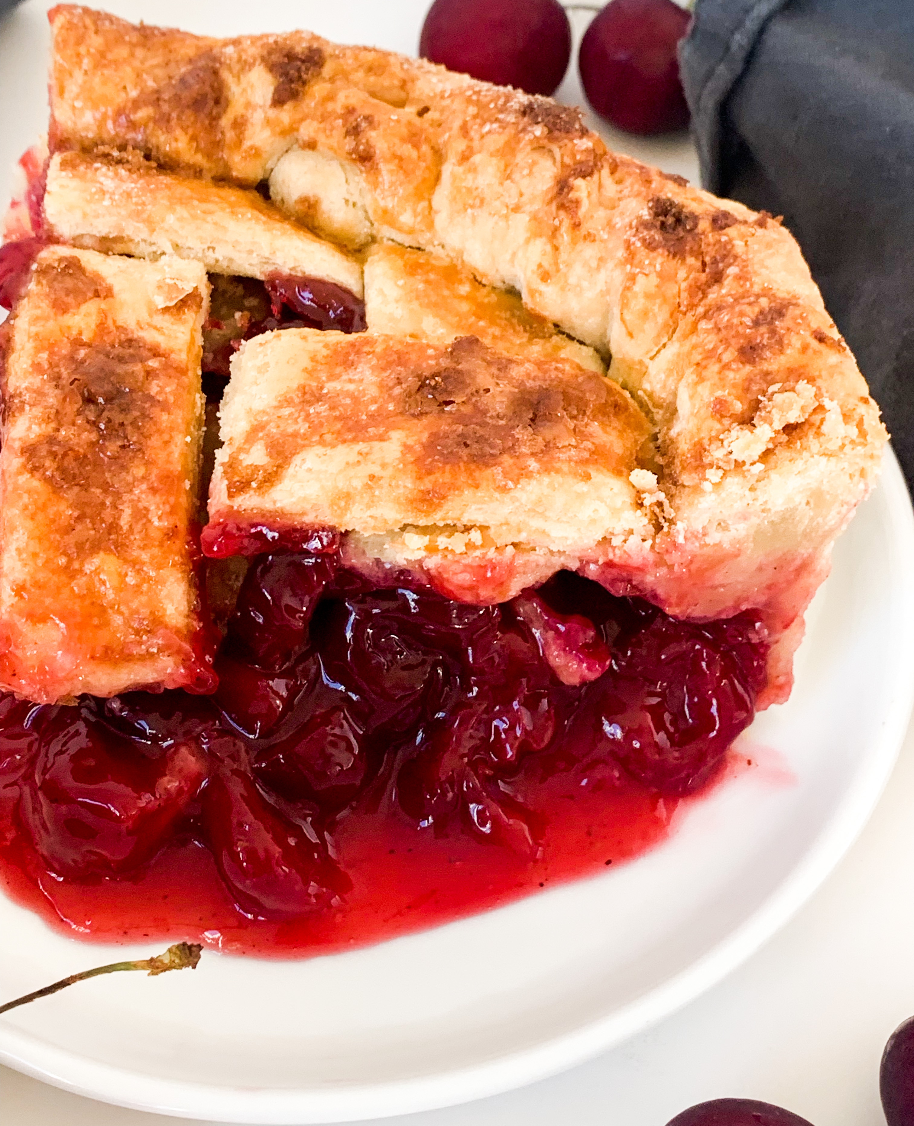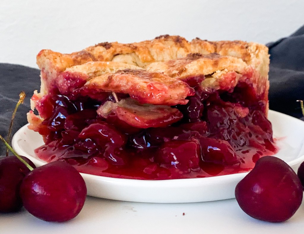 So I’ve never ‘actually’ tried a cherry pie, but I’ve always wanted to. I mean in movies it’s always a slice of cherry pie that they order.. and it always just looks sooooo goooood! So I played around with a few flavor boosts and ended up using cinnamon, almond extract and some lemon to bring out the cherry flavour. And it ended up being pretty tasty! I mean I don’t really have anything to compare it to, but I really liked it. So this is ’my’ version of a cherry pie and I know for sure you will love it too!