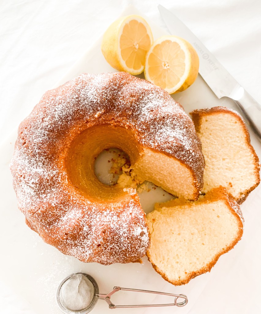 I had a few extra lemons in the fridge that would’ve gone bad if I didn’t use them soon, so I decided to bake a lemon Bundt with them.. honestly I just needed something super simple and quick to bake because 1) needed to use up my lemons, 2) needed to keep my 15 month old occupied while my two old slept and 3) I needed sugar for extra energy to juggle these to kiddos and fast! Lol