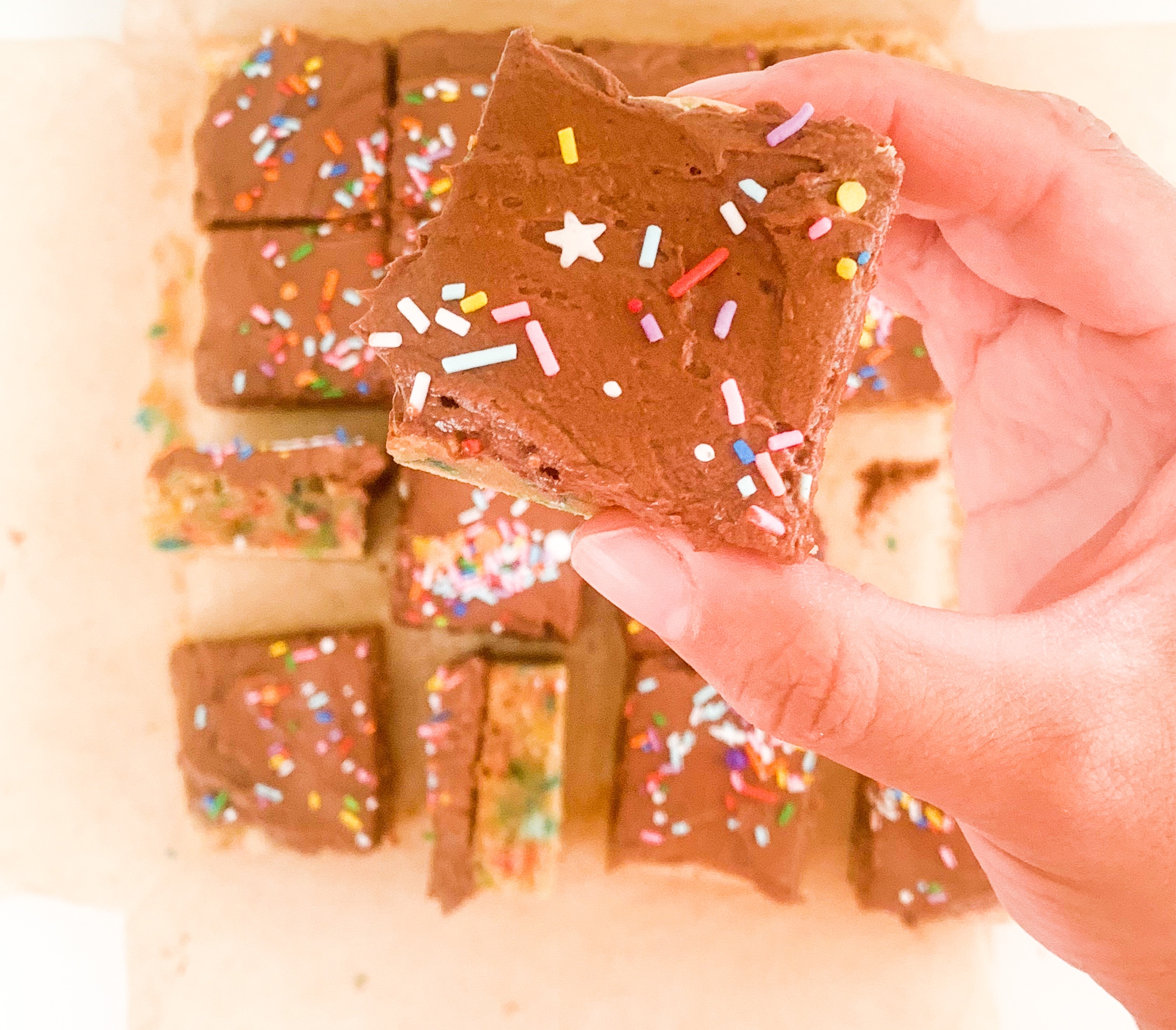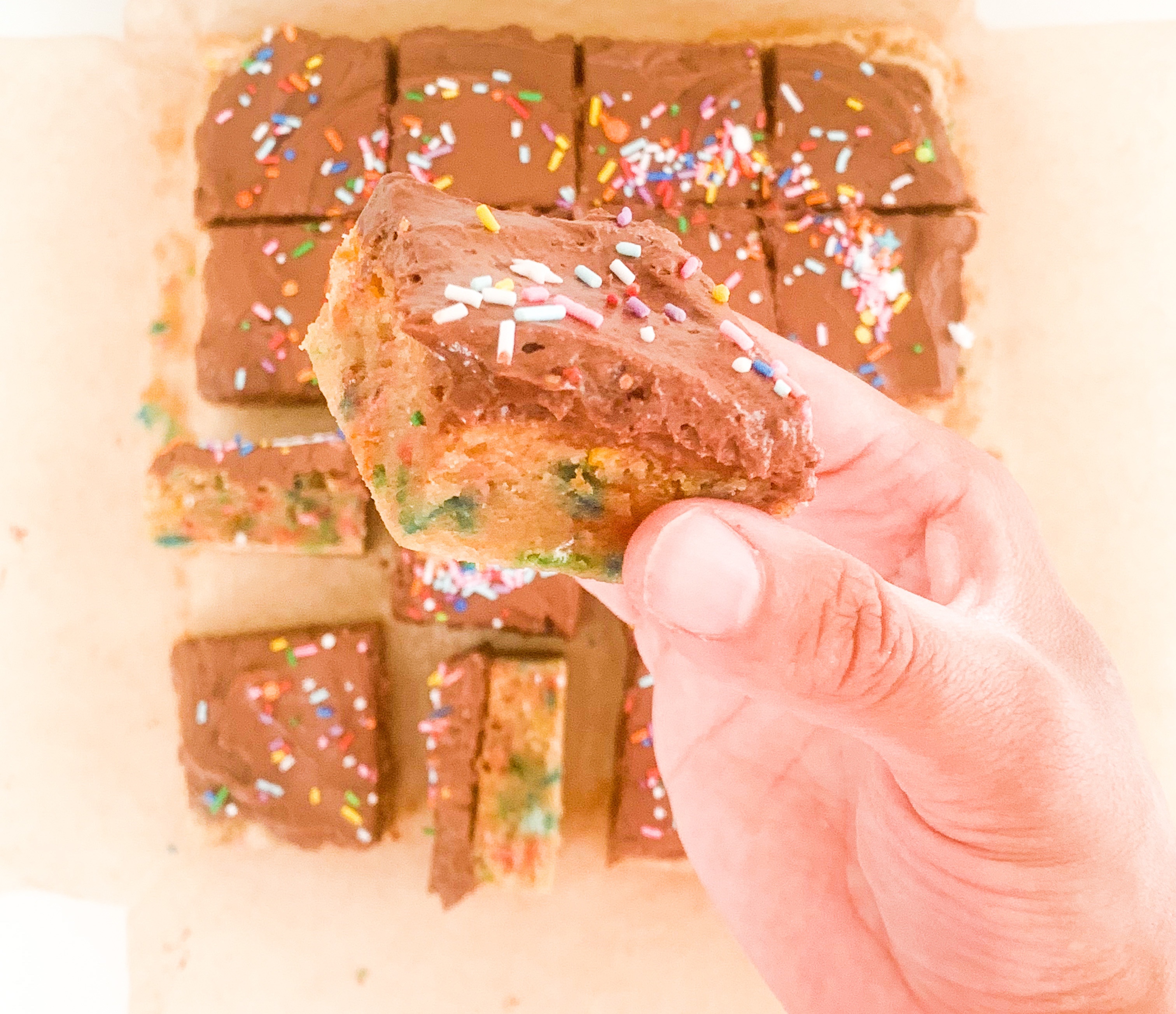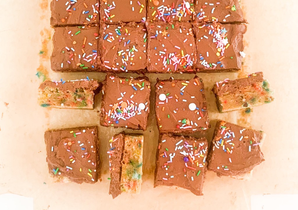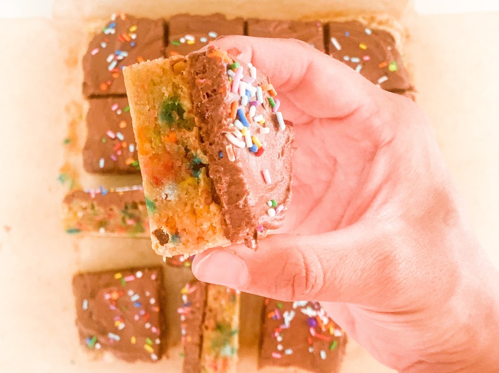 - Spread over the cooled blondie, sprinkles some more funfetti sprinkles on top and ENJOY!