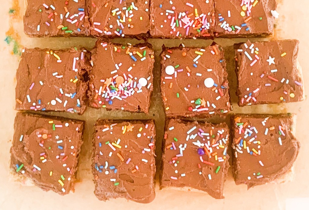 Ganache is one of my favorite fillings, especially when it’s whipped. And yesterday I had been craving the fluffy chocolatey whipped frosting so bad that I just needed to make something which I could eat it with. Since I always do chocolate on chocolate I decided to make something fun that is inspired by my nephew and nieces.. so naturally it needed to have a whole ‘lotta sprinkles in it! 🥳