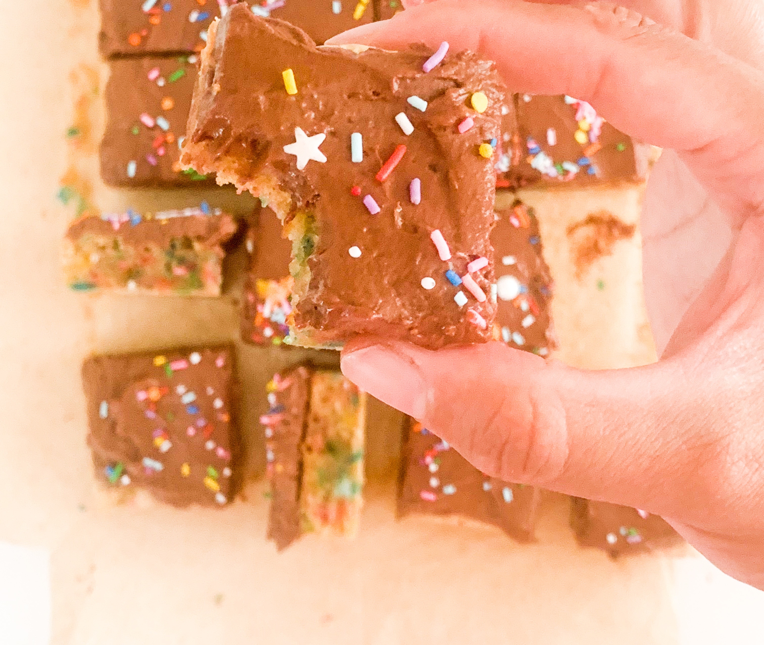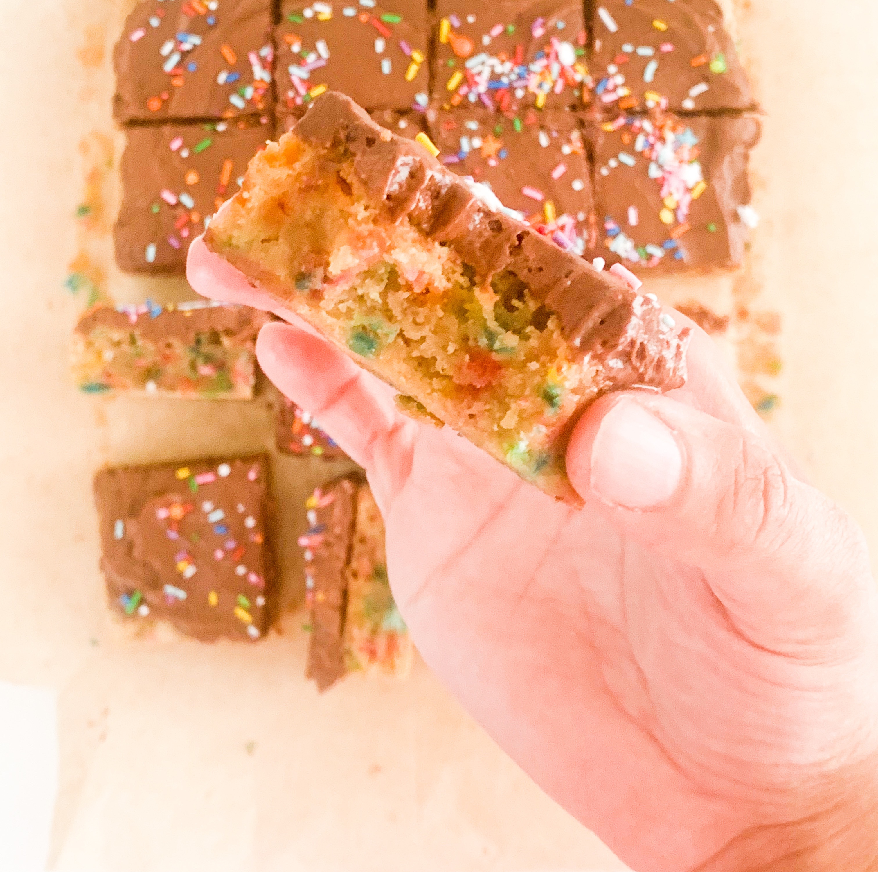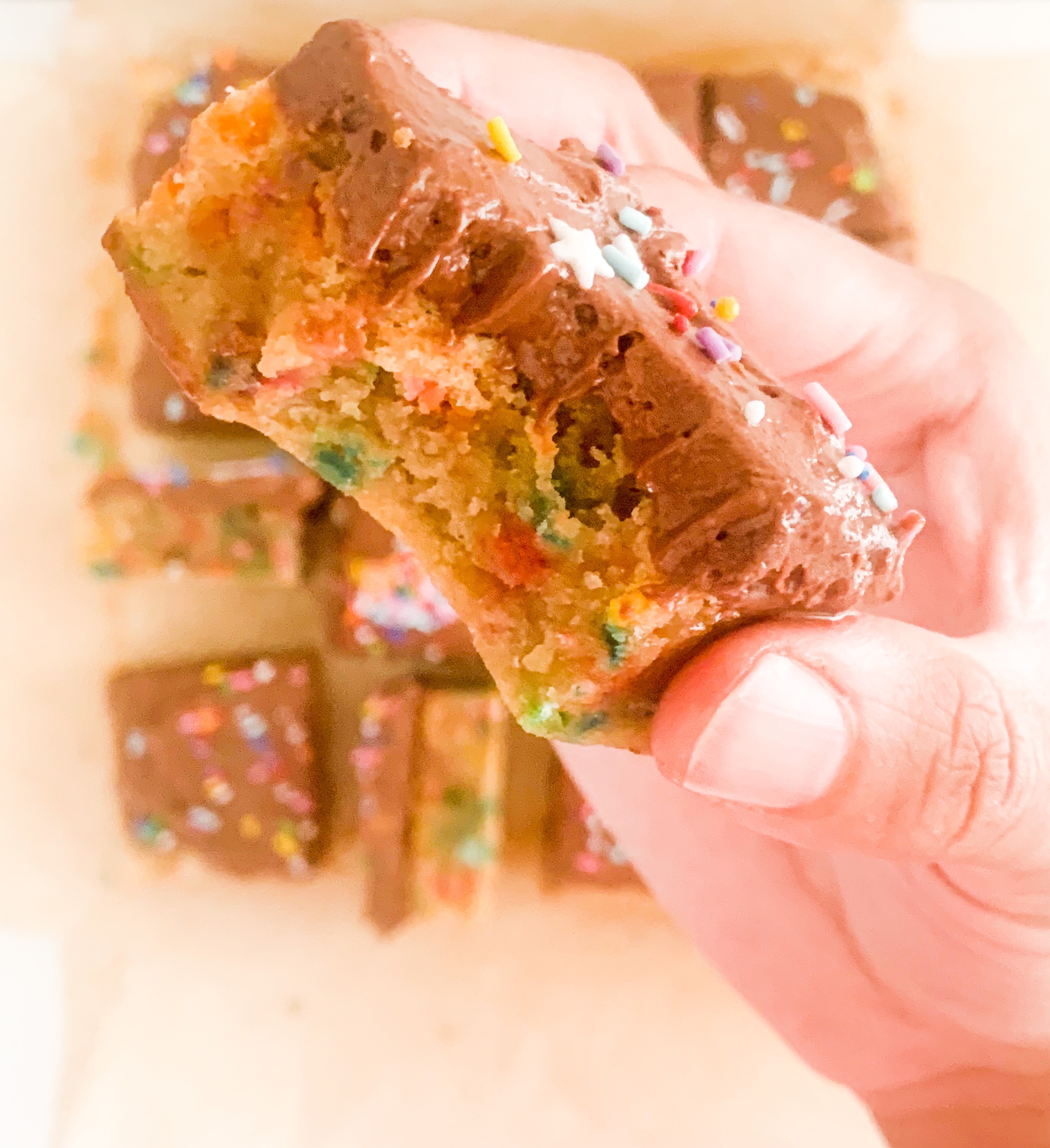 So what better way I thought, to make something both young and old could enjoy than to make a sophisticated Bundt butter blondie but put an 80’s kiddy twist by adding heaps of funfetti sprinkles to it! And Ofcourse spread some fluffy whipped chocolate ganache over the top! Who could say no to that! I’ll tell you who.. NO ONE! 😁