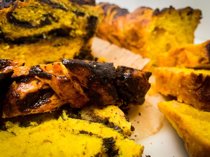 One of the main ingredients used in Sweden during this time is Saffron. And so as I’m into all things gluten and fluffy and warm and cozy right now, I thought let’s try a saffron Babka with white chocolate and almond paste. My bank recipe always gives you two babkas, so therefor I decided that one Babka will be white chocolate and the other will be with dark chocolate. It’s not as hard as you may think- it’s a simple butter brioche type of dough, the only thing is , it needs to be set the night before. So a great make a head (sort of) bake. Give it a go, you will LOVE it!