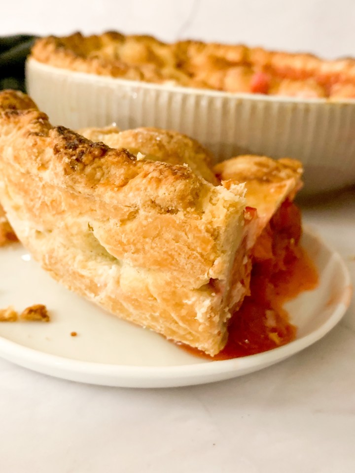 - You can make any type of pie crust design or even just cover it whole. But if you do choose to cover it whole then make sure to poke a few holes to let the steam out while the pie bakes. I’ve chosen to do a tight lattice with crimping on the edges.