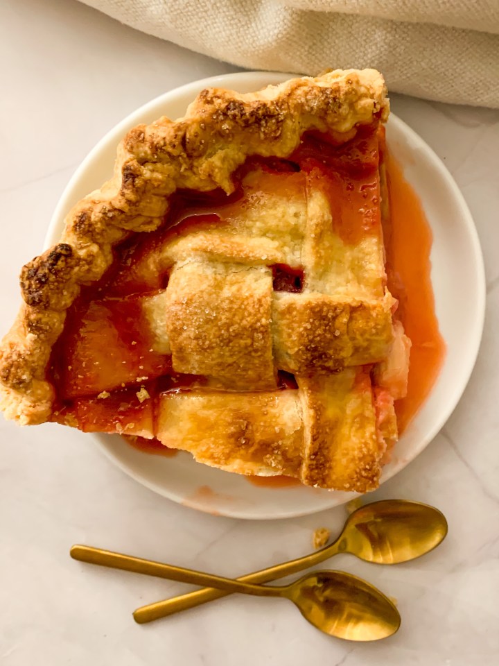 - Bake the pie for 60-70 minutes. Once the pie is ready let it sit for about 4 hours before slicing into it to let all the juices come together.