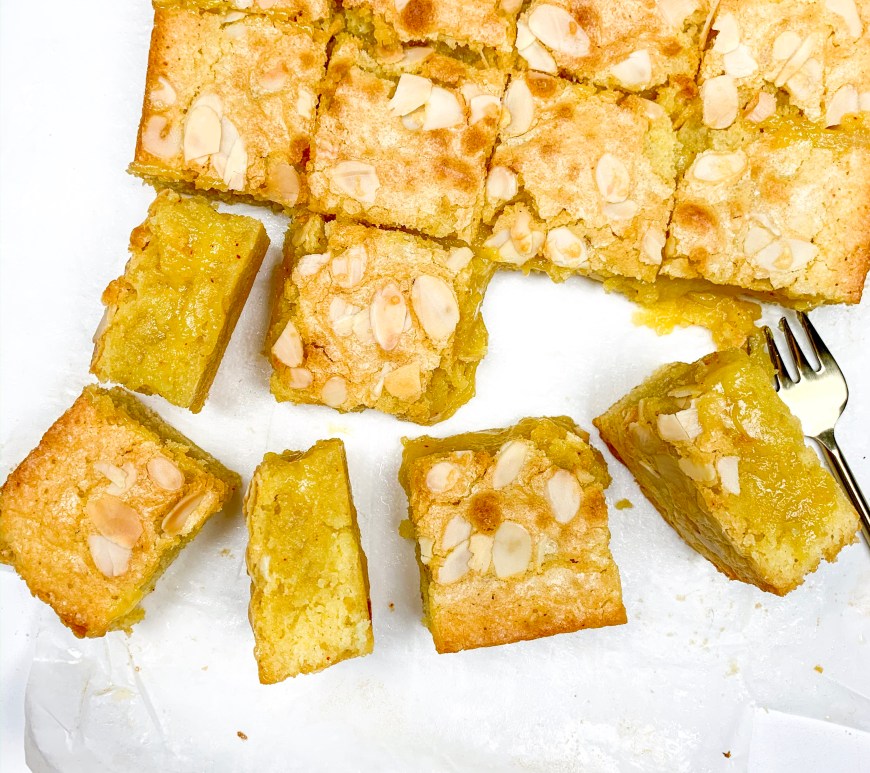 Saffron Blonde Brownie with white Chocolate & Almond paste