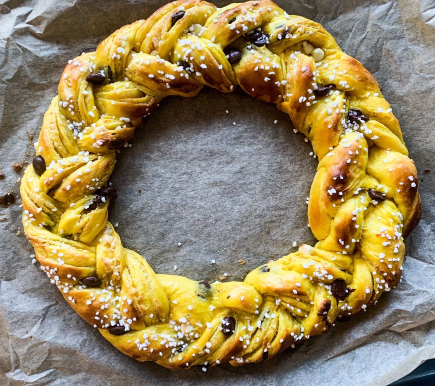 I love saffron and I love chocolate. The winter season is lingering just around they corner and as soon as this time of year comes, I’m always wanting to eat something fluffy and warm and delicious. (Not that I don’t want that anyways lol) .. in Sweden we eat lots of saffron buns this time of year, and this time I decided to bake a … Continue reading Saffron Braid with almond paste and white & dark chocolate