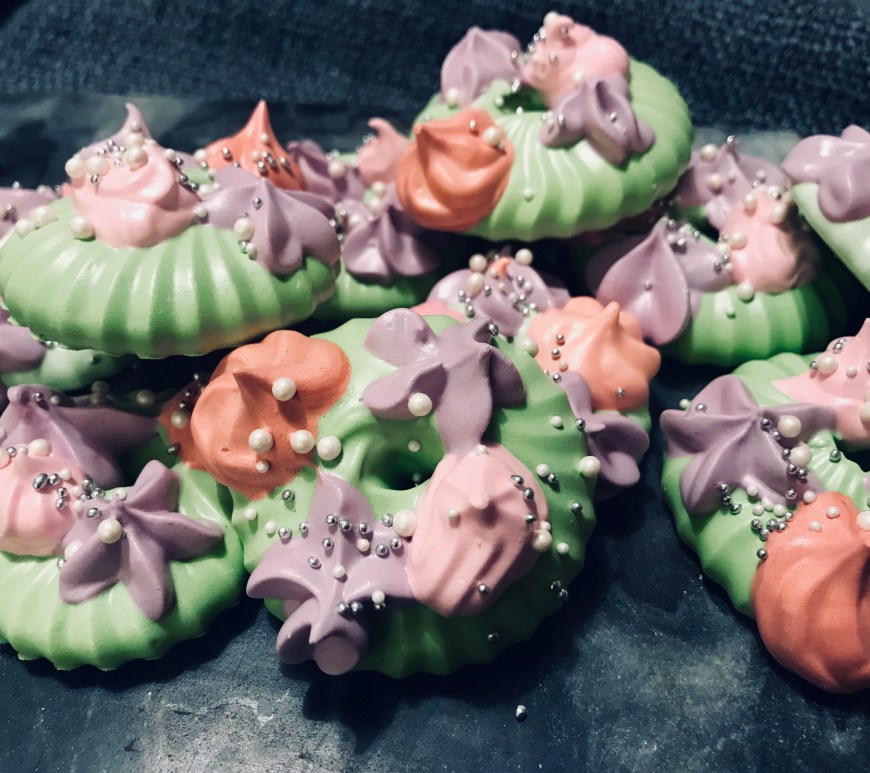 I love meringues! Especially if they are chewy! The best part about meringues is that you can make them into any shape and size you want! Ill be showing you guys my meringue wreaths, They beautiful small little meringues that almost look like ornaments! They also have vanilla and passion fruit flavour in them / yes PASSION FRUIT! YUM RIGHT!?!? Super easy to make and … Continue reading Meringue Wreaths
