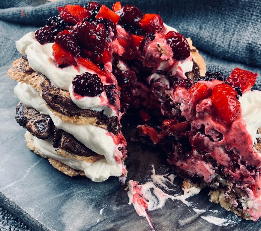Sugar-Free Nut & Chocolate Dacquoise with Cream and Forest Berries